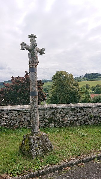 Petite croix en pierre du commencement du XVIe siècle à Saint-Amant-Roche-Savine dans le Puy-de-Dôme