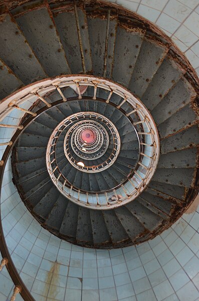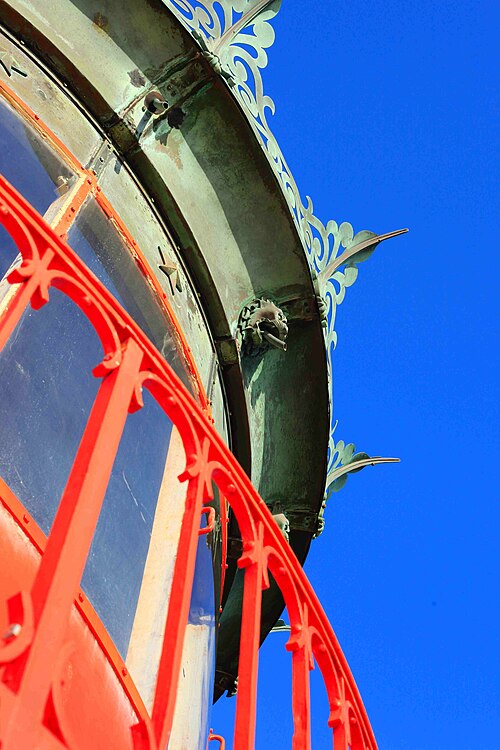 Ce phare en béton, de plan cylindrique et de type « trompette », reprend le couronnement de 1895 de manière simplifiée. Le béton, posé par branches, n'est armé que partiellement ; la coque intérieure est entièrement recouverte de carreaux d'opaline blanche et bleue et abrite un escalier métallique en vis suspendu de 300 marches. À 35 mètres une chambre en encorbellement, portée par des consoles en fonte, contient un feu de direction à secteurs rouge et vert, destiné à guider l'entrée dans la passe de l'Ouest et à éviter les hauts‑fonds. La chambre de veille et la chambre de la lanterne sont lambrissées ; quatre colonnes en fonte supportaient autrefois une cuve à mercure mise en mouvement par un système de contrepoids aujourd'hui disparu. La lanterne, à châssis de bronze et de fer, est coiffée d'un dôme en cuivre surmonté d'une sphère de décompression des gaz, et sa base est ornée de têtes de lion et d'une couronne en cuivre ajouré. Deux bancs d'origine en chêne subsistent dans la lanterne et une colonne centrale en fonte porte la cuve à mercure désormais entraînée par moteur électrique. Dès l'origine plusieurs bâtiments complètent l'ensemble : logements des ingénieurs et des gardiens, salle des machines et magasins.