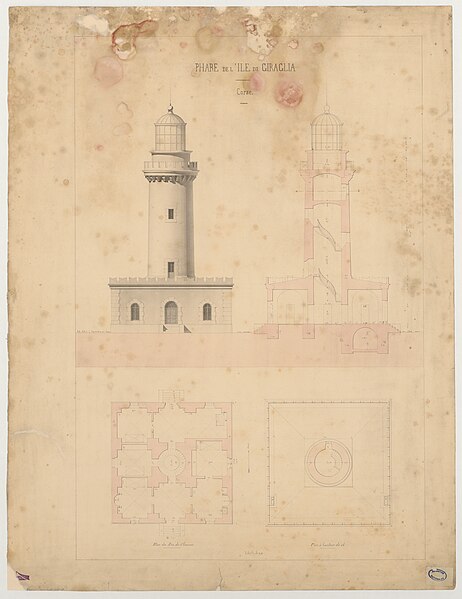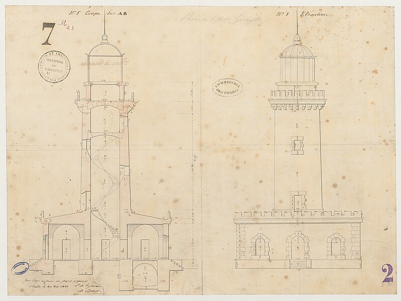 Le phare actuel, construit sur ce site à partir de 1839, est l'un des cinq phares de premier ordre établis pour ceinturer l'île. Il a été allumé le 1er janvier 1848 conformément aux plans approuvés par Léonce Reynaud. La construction comprend une tour cylindrique en maçonnerie haute de 26 mètres, implantée sur un soubassement rectangulaire en maçonnerie qui abrite les logements des gardiens, caves et magasins. L'appareil d'éclairage a d'abord fonctionné avec un feu à éclipses de 30 secondes, puis, en 1904, avec un feu à éclats toutes les cinq secondes. Le phare présentait à l'origine des pierres apparentes et des créneaux lui donnant l'allure d'un château fortifié.