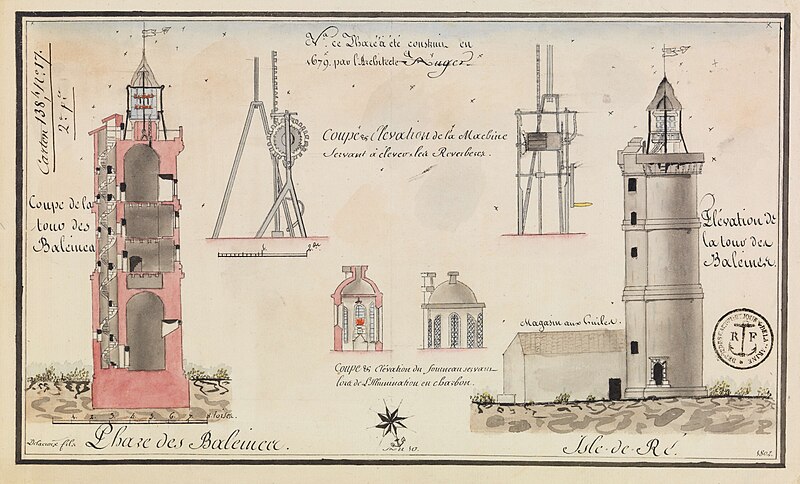 Le Vieux Phare des Baleines et le phare des Baleineaux se situent à la pointe ouest de l'île de Ré, sur la commune de Saint-Clément-des-Baleines (Charente-Maritime). Le nom « Baleines » vient du nombre relativement élevé de baleines qui venaient s'échouer autrefois à cet endroit. La vieille tour a été construite de 1669 à 1682 sur les plans de l'ingénieur Augier, réalisée par Maurice Coulom et édifiée sur directives de Vauban ; elle a été allumée en 1682. Son feu initial, alimenté à l'huile de poisson, était équipé d'un chandelier de 18 mèches dans une lanterne de pierre vitrée ; les marins se plaignirent dès 1685 de la mauvaise qualité de l'éclairage, les fenêtres furent agrandies en 1718 et la lanterne de pierre remplacée en 1736 par une structure métallique forgée par Joseph Laurent. La vieille tour fut éteinte en 1854 lors de la mise en service du grand phare, puis restaurée en 1934, 1936 et de nouveau entre septembre 2006 et juillet 2007.