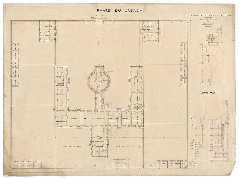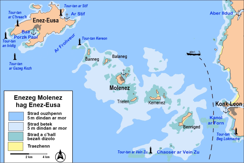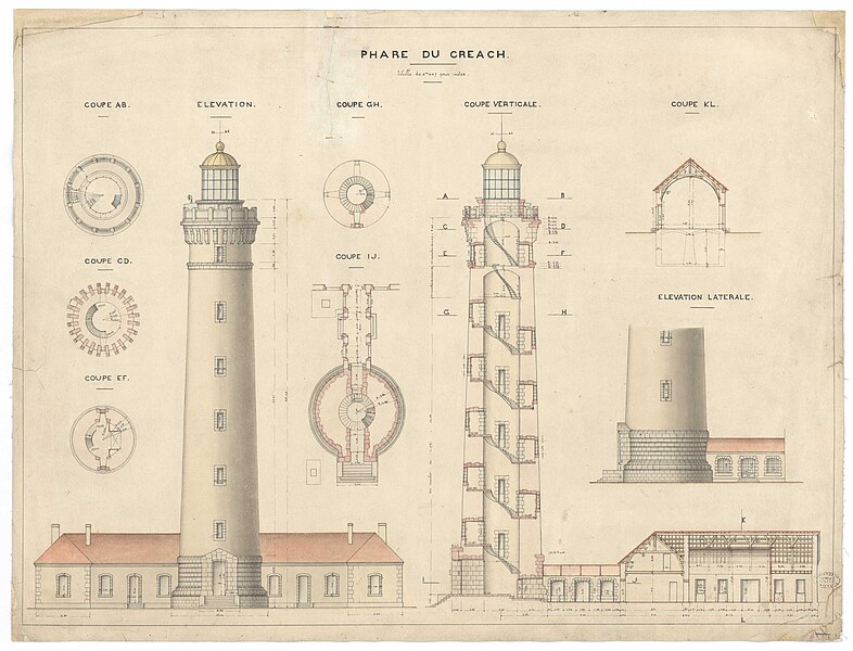 Le phare du Créac'h figure parmi les plus puissants d'Europe ; ses deux lanternes superposées émettent un signal lumineux réparti en huit faisceaux d'une portée d'environ 60 kilomètres.