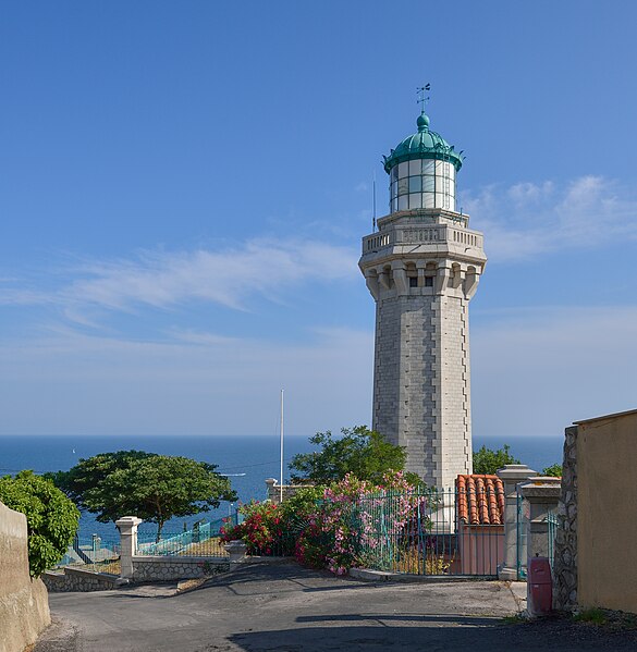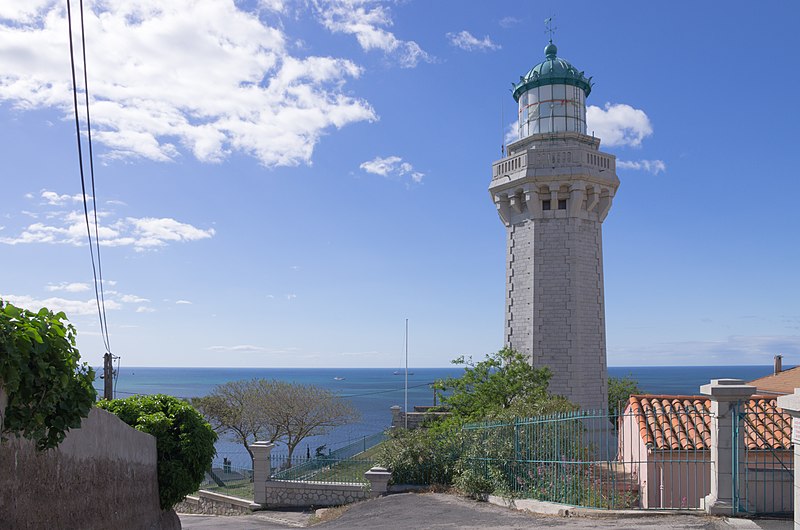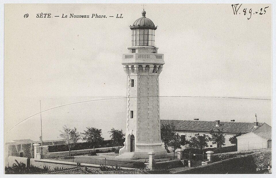 Le phare du Mont‑Saint‑Clair, l’un des derniers grands phares de première catégorie inscrits au programme de la fin du XIXe siècle, se dresse sur le mont Saint‑Clair, à Sète. La création de ce phare faisait suite aux décrets de 1853 et 1878 et à une relance en 1898 visant à améliorer l’éclairage du port de Sète et du littoral de l’Hérault, en remplaçant le feu du cap d’Agde par un grand phare d’atterrissage aligné sur le môle Saint‑Louis et le feu de l’Épi Est du brise‑lames. Après plusieurs décisions et projets entre janvier 1899 et janvier 1900, la construction fut lancée ; les travaux débutèrent avec l’entrepreneur Massol, dont le décès entraîna une réattribution au profit de l’entreprise Troglia à la fin de 1900, alors que les fondations étaient déjà réalisées. Les ouvrages comprenaient la réalisation du fût octogonal et des logements destinés aux trois gardiens ; la lanterne fut montée en avril 1902 et le feu de la Verrerie fut ensuite supprimé, tandis que le phare du môle Saint‑Louis subissait des modifications. Les travaux, conduits sur trois ans, aboutirent à l’allumage du phare le 23 avril 1903. Le projet prévoyait que le phare soit placé à une hauteur de 92 m ; la tour, en pierre, mesure 23 m et présente une silhouette octogonale légèrement pyramidale, la focale étant située à 18,90 m. La lanterne, décorée de mufles de lions et de feuilles d’acanthe, est coiffée d’une coupole en cuivre et dotée d’un vitrage cylindrique réparti sur trois niveaux. À l’arrière de la tour se trouvent plusieurs bâtiments abritant le logement des gardiens, les salles techniques, des garages, un puits, un jardin et un terrain, l’ensemble étant clos par une grille sur murette. Le phare occupe le flanc du mont Saint‑Clair, au‑dessus du cimetière marin et du musée Paul‑Valéry, à proximité du fort Richelieu. Il a été électrifié en 1938, son fonctionnement antérieur reposant sur la vapeur de pétrole, et a été inscrit aux monuments historiques en 2011.
