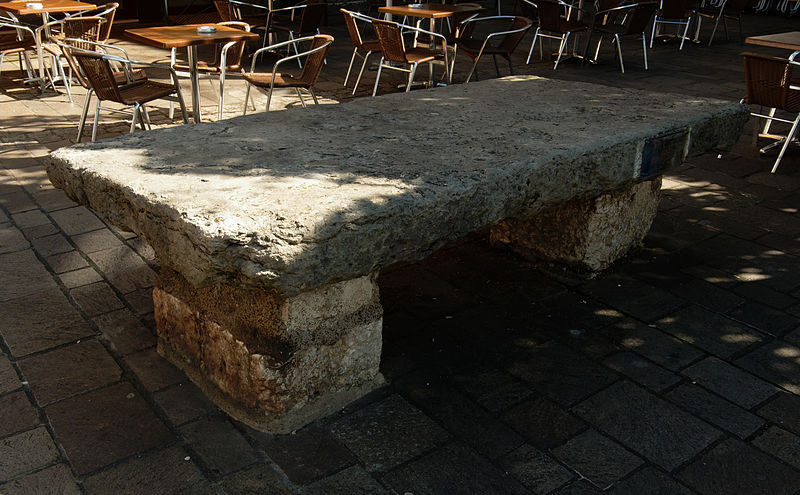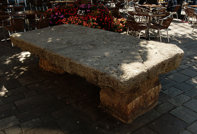 La Pierre à poissons est une dalle de calcaire dont l'origine est inconnue, installée à son emplacement actuel à la fin du XVe siècle. Elle doit son nom au cri du poisson qui annonçait sa vente lors du marché public de Montbéliard. Dernier monument médiéval intact de la ville, elle a longtemps servi d'étal pour le poisson d'eau douce pêché dans les rivières et étangs environnants. Sa plus ancienne mention écrite remonte à 1470, mais elle pourrait être plus ancienne. Elle se trouve au débouché de la rue des Fèbvres, au coin du bourg de la Halle, dans le square Farel, à l'extrémité est de la place Denfert-Rochereau. Le bourg de la Halle, enclos vers 1300 et séparé de la ville par un mur communiquant par la porte de l'Horloge, était alors le principal lieu de commerce et d'animation de la cité. À l'époque médiévale, la pierre était encluse dans une maisonnette en bois. Sa fonction d'étal s'explique aussi par l'importance de la consommation de poissons d'eau douce, renforcée par les nombreux jours maigres imposés par le catholicisme. La tradition fait de la Pierre à poissons une tribune où Guillaume Farel aurait prêché la Réforme ; Giulio Vittini a peint cette scène, très ancrée dans la mémoire collective, mais aucun document historique ne confirme qu'il ait prêché depuis cette table. Après un passage à Bâle en 1523 auprès d'Œcolampade, Guillaume Farel est appelé par le comte Ulrich VI de Wurtemberg pour prêcher à Montbéliard. Il séjourne dans la cité entre juillet 1524 et mars 1525, prêchant avec véhémence et provoquant débats et incidents avec des franciscains et les chanoines de Saint-Maimboeuf. Une partie de la population désapprouve ses excès, et les cantons suisses obtiennent son départ ; il regagne alors Bâle. Ce séjour lui permet de s'affirmer comme réformateur indépendant et d'élaborer sa "Sommaire et brève déclaration", premier traité de liturgie évangélique en français. Il poursuivra ensuite son action dans le pays de Vaud, à Neuchâtel, puis à Genève où il rencontre Jean Calvin en 1536. Le passage de Farel contribue à préparer l'installation de la Réforme luthérienne à Montbéliard, que Pierre Toussain imposera en 1538. Sur le plan architectural, la Pierre à poissons forme une table : deux pieds en pierre supportent une large dalle en calcaire. Ses dimensions sont de 20 cm de hauteur, 265 cm de longueur et 125 cm de largeur. Elle est classée au titre des monuments historiques depuis le 9 novembre 1922.
