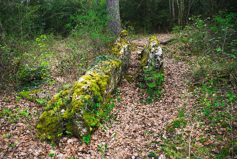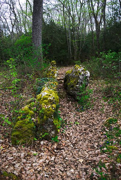 L’édifice se compose de deux dalles de calcaire dressées parallèlement, orientées nord-sud et séparées par un espace inférieur à 0,35 m, contrairement à la mesure de 0,80 m fournie par Jeanton et Lafay dont les dimensions sont exagérées. La dalle côté ouest est un bloc naturel long de 3,90 m, émergeant du sol sur 1,60 m au maximum, avec une épaisseur variant d’un peu plus d’un mètre à la base à 0,20 m au sommet; les fouilles de 1919 s’arrêtèrent avant d’en atteindre la base à plus de 2 m de profondeur. Les opérations de 1980 ont montré que cette dalle est l’émergence du substrat rocheux, dont le pendage est pratiquement vertical à cet endroit ; elle est traversée d’une fissure verticale, sa face est plane à l’est et très irrégulière, percée de nombreux trous, à l’ouest. La seconde dalle, d’origine anthropique, mesure 2,15 m de longueur sur 1,20 m de hauteur pour une épaisseur moyenne de 0,40 m; elle repose sur le sol sans fosse de calage, sa face orientale est à peu près plane tandis que la face occidentale présente un fort renflement à la base et de nombreux trous horizontaux. Sur des photographies de 1922 la dalle paraît parfaitement verticale, mais elle s’est depuis légèrement inclinée vers l’ouest. Contrairement aux indications de Jeanton et Lafay, aucune gravure en forme de rouelle n’orne l’une des dalles.