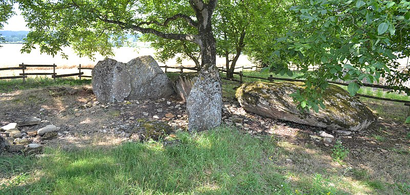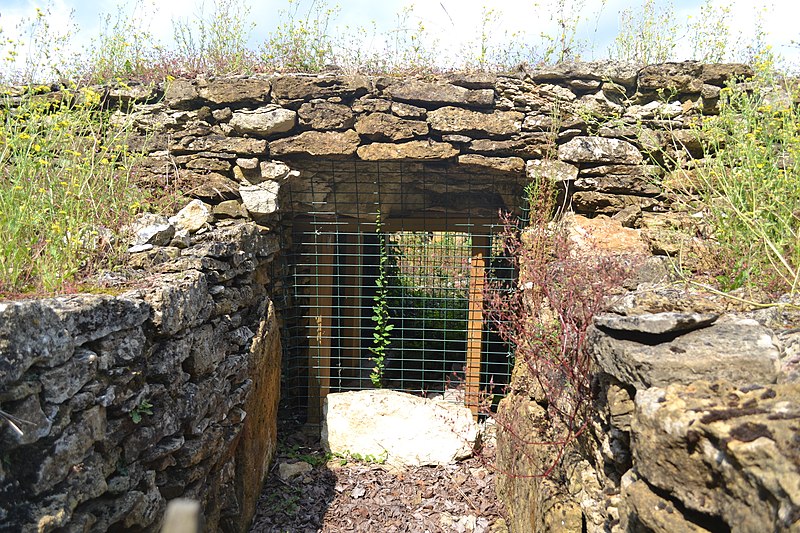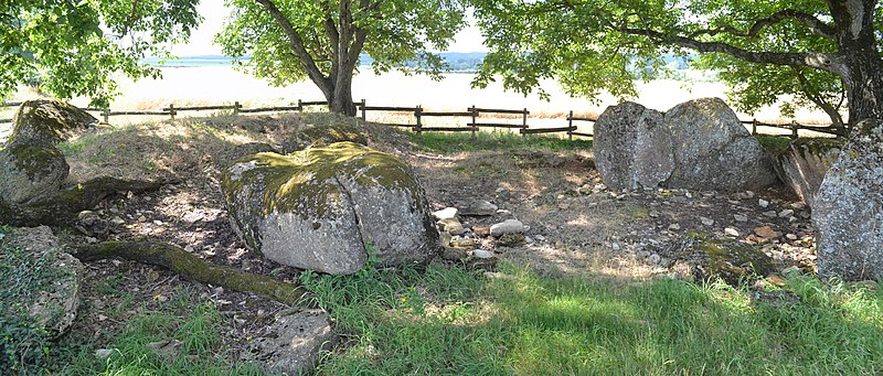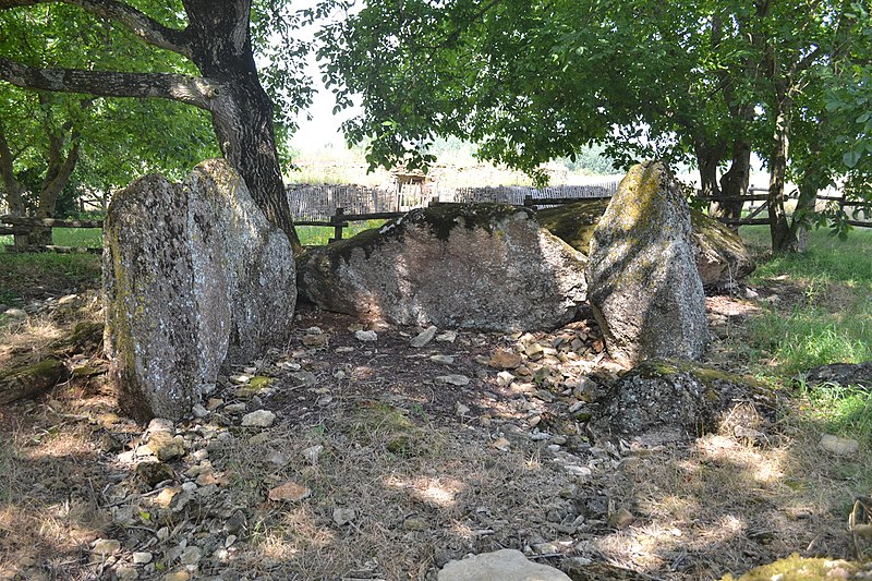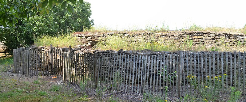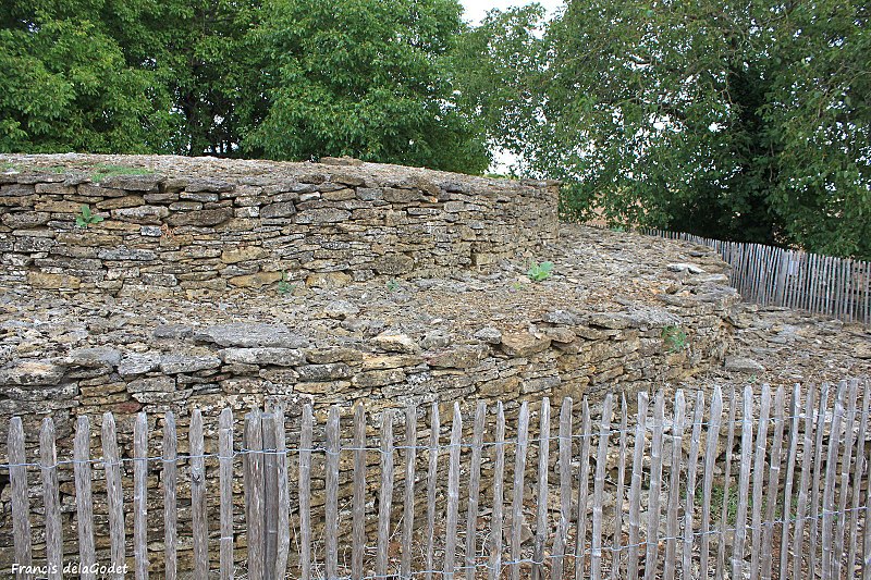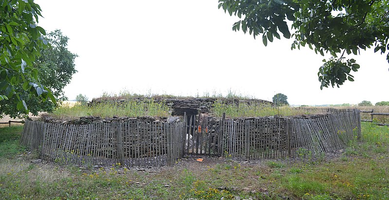 Autour de la chambre se trouvait un mur de parement délimitant une première enceinte jusqu'à environ 7,50 m du centre, dessinant la forme d'un prisme irrégulier dont l'espace entre parement externe et muret interne avait été comblé par des blocs. L'ensemble était coiffé d'une seconde enceinte, large d'environ 2,50 m et haute de 1,20 à 1,40 m, qui nécessitait une légère reprise du couloir en le décalant ; sur le versant ouest, plus pentu, cette seconde enceinte était renforcée par un petit mur de soutènement. Les deux enceintes et l'entrée du couloir ont fait l'objet de restaurations.