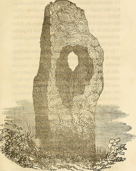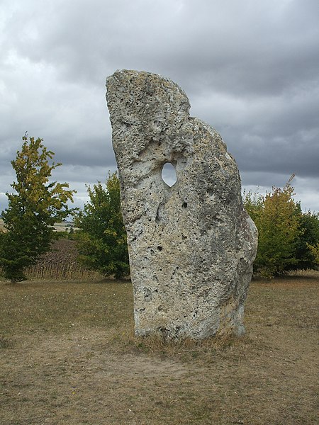 La Pierre percée, parfois appelée Pierre des Érables, Pierre des Arabes ou Bogue de Gargantua, est un menhir troué implanté sur la commune de Draché en Indre‑et‑Loire. Haute d’environ 4 m, elle constitue le plus haut menhir encore debout du département et son orifice a donné naissance à de nombreuses traditions. Le monument se trouve au nord‑ouest de la commune, à proximité de Sainte‑Maure‑de‑Touraine et de Maillé, accessible par un chemin d’un tracé ancien qui sert de limite communale entre Draché au nord‑est et Maillé au sud‑ouest. À 90 m d’altitude, elle est plantée à mi‑pente d’une colline dont le sommet, à 106 m, se situe à 800 m au sud‑est, et elle est proche de la D910 (ancienne N10). Le menhir figure sur les armoiries de Draché ; initialement propriété privée, il a été acquis par le Conseil départemental d’Indre‑et‑Loire et classé au titre des monuments historiques par arrêté du 29 avril 1911. Mesurant près de 4 m de haut pour une base d’environ 1,70 × 1,40 m, ses faces les plus larges sont orientées est‑ouest. La partie enfouie n’aurait qu’environ 60 cm de profondeur et aucun bloc de calage n’a été observé. Le trou, situé à 1,40 m du sommet, mesure approximativement 25 × 20 cm et se trouve à plus de 2,50 m au‑dessus du sol ; il semble résulter d’une érosion différentielle d’une roche hétérogène. La pierre paraît être un calcaire meuliérisé, alors que les affleurements du secteur sont plutôt des tuffeaux ; certains auteurs la décrivent comme un spath calcaire du Turonien et l’on note la présence, un peu au sud, de colluvions présentant des faciès comparables. Lors de fouilles menées en 1910, on a mis au jour au pied du menhir des éclats de silex sans traces d’utilisation. Comme la plupart des mégalithes de la région, la Pierre percée est attribuée par certains à la fin de la période mégalithique, vers 2500–2000 av. J.‑C., tandis que d’autres archéologues proposent une fourchette plus large, 4000–2000 av. J.‑C. Le nom « Pierre des Arabes » relève très probablement d’une déformation phonétique de « Pierre des Érables » ; des traditions locales rapprochent aussi ce toponyme d’interprétations erronées liées à la bataille de Poitiers ou à la présence supposée de Sarrasins enterrés au pied du menhir. L’appellation « Bogue de Gargantua » apparaît comme une variante plus récente liée à la popularité du mythe rabelaisien. De nombreuses croyances populaires entourent l’orifice : on rapporte que des condamnés devaient y passer la tête avant l’exécution, que présenter la tête d’un enfant à l’ouverture assurait sa bonne santé et la protégeait des écrouelles, et que faire passer un bouquet garantissait la fidélité d’un serment. La pierre est depuis longtemps un lieu où les jeunes échangent serments, parfois un baiser à travers l’ouverture, et l’on attribue également des vertus protectrices aux fragments de lichen prélevés sur le monument ou à l’herbe cueillie à son pied. Sur le plan archéologique, l’élévation de ce type de menhir est rattachée à la culture d’Artenac, dernière phase du Néolithique local, caractérisée par une production lithique et céramique marquée et par des réseaux d’échanges à longue distance, visibles dans la région par l’emploi du silex du Grand‑Pressigny et la présence de nombreux vases. Certains indices, comme des poteries interprétées comme des faisselles, ont été opposés aux récits populaires d’apports culturels extérieurs, tandis que l’abondance de haches en pierre polie d’origine armoricaine et leur répartition le long des cours d’eau montrent l’importance des axes fluviaux, la Vienne étant située à quelques kilomètres du site. La situation du menhir à mi‑pente, sur des sols silico‑argileux et caillouteux dits « perruches », peut renvoyer à des choix d’implantation anciens, ces terres ayant pu être plus faciles à défricher avec un outillage rudimentaire. Des fouilles préventives menées en 2013 à Pussigny, non loin d’un autre menhir, ont livré du mobilier, des éléments de parcellaire et des trous de poteaux confirmant une fréquentation attribuée à la culture d’Artenac et l’importance de l’industrie du Grand‑Pressigny. Un aménagement délimité autour de la Pierre percée a été réalisé par le Conseil départemental, l’accès restant libre ; située en lisière de bois et dominant la plaine, elle demeure peu fréquentée et est souvent décrite comme un lieu propice à la contemplation.