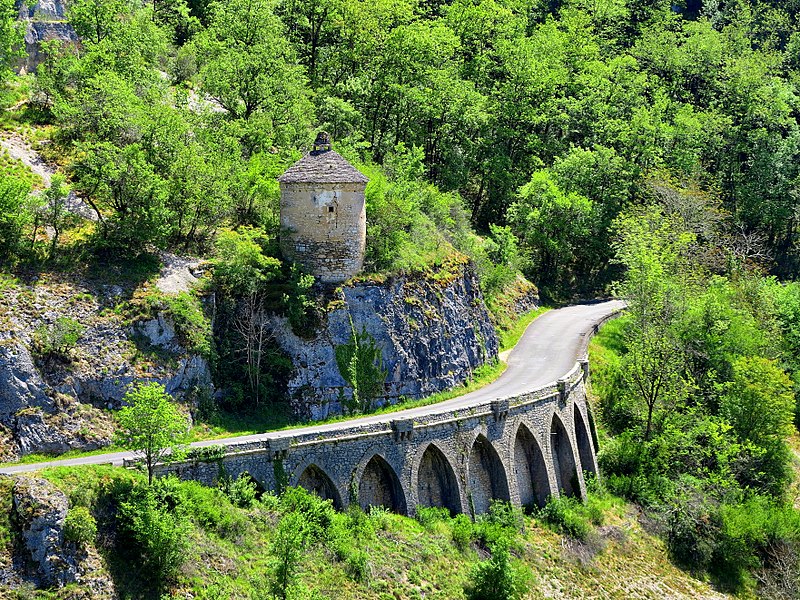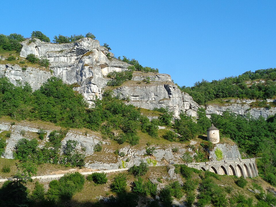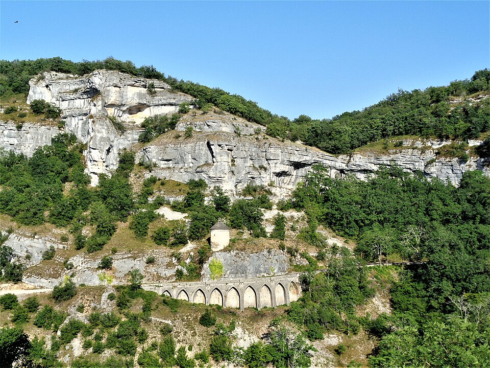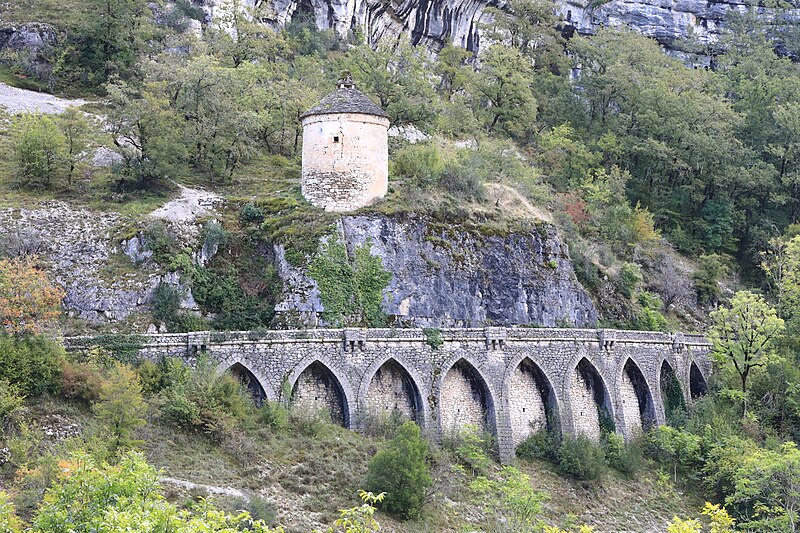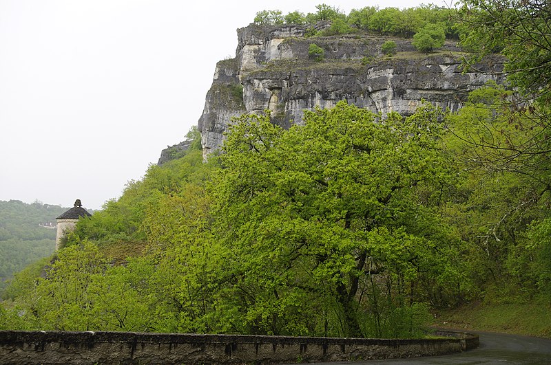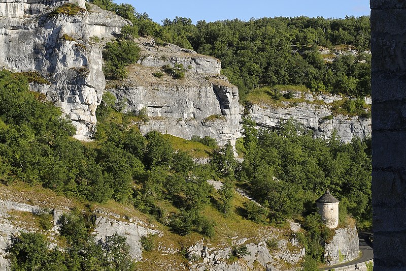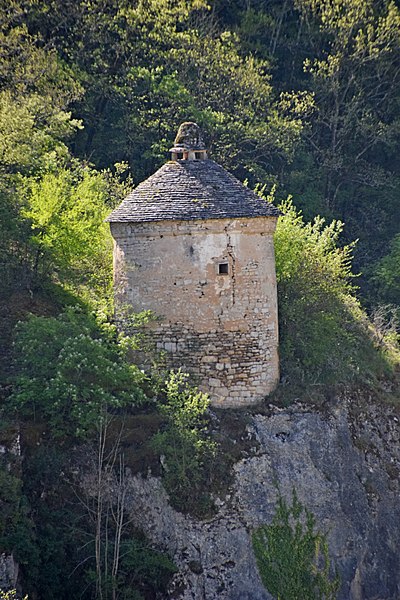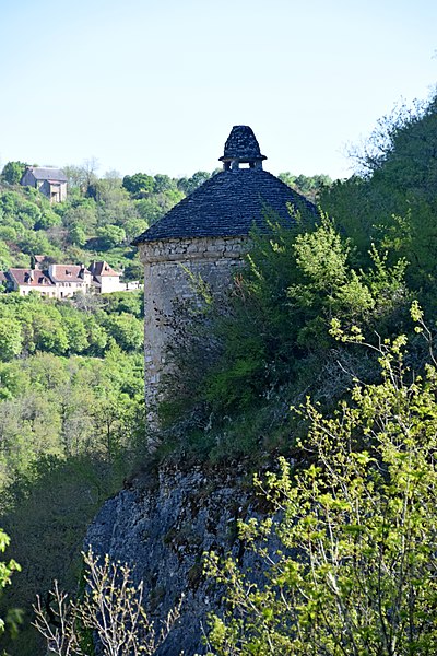 Le pigeonnier de Laguille, implanté au flanc de la falaise faisant face à la cité de Rocamadour, est isolé et marque fortement le paysage. Typique des paysages quercynois, son modèle perdure du XVIe au XIXe siècle. En l'absence de date certaine, la mouluration en quart de rond de la corniche, ou « randière », pourrait évoquer une datation ancienne. On ignore quel était son propriétaire, mais on peut avancer qu'il était rattaché à un riche domaine agricole. L'élevage des pigeons apportait une part non négligeable à la consommation quotidienne des habitants et, surtout, la colombine produite par les oiseaux, qui fut jusqu'au XIXe siècle l'un des meilleurs engrais. Le pigeonnier a pu être construit aux XVIe ou XVIIe siècles.