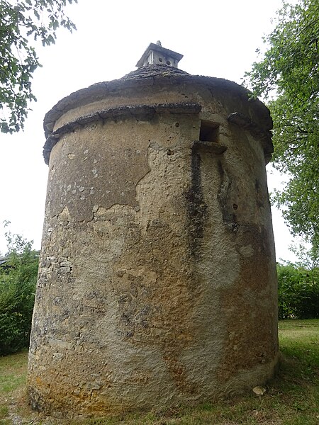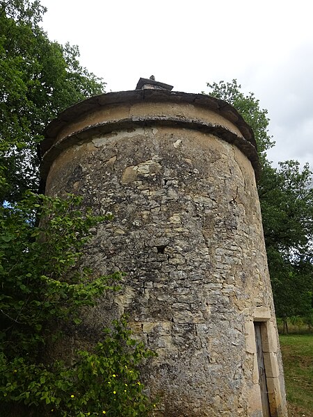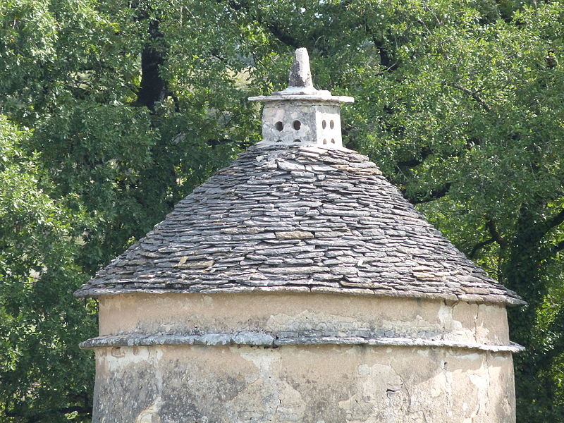 Pigeonnier circulaire ceinturé d'une randière, bâti en calcaire et surmonté d'un toit de lauzes ayant conservé son lanterneau d'envol. L'intérieur, dépourvu de trous de boulins, présente toutefois des vestiges attestant l'usage de nids en osier.