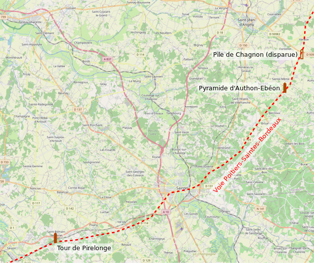 La Pile romaine dite « La Pyramide » à Authon-Ébéon est une tour pleine en pierre gallo-romaine, située en bordure de la départementale D 129. Elle se trouve le long de la voie romaine reliant Saintes à Poitiers, dont le tracé est sensiblement repris par la route moderne. Les vestiges, très dégradés, sont protégés au titre des monuments historiques par la liste de 1840. Appelée aussi « fanal d’Ébéon », son nom dérive du latin fanum, « temple ». Des hypothèses l'ont parfois présentée comme un repère pour les voyageurs ou un amer pour les navigateurs, mais ces interprétations ont été écartées ; il s'agit plus probablement d'un monument funéraire lié à un riche propriétaire local. Le parement en grand appareil a été presque entièrement récupéré et n'a laissé subsister que le noyau en blocage. Depuis la fin des années 1930, des étais assurent le soutien de la structure. En 2020, une association locale et des élus ont exprimé leur inquiétude quant à l'état et à la stabilité du monument. Aujourd'hui la pile se présente comme un bloc massif de maçonnerie de 6 mètres de côté, orienté selon les quatre points cardinaux, et d'environ 16 mètres de hauteur. Elle devait être revêtue d'un parement et pouvait être couronnée par une pyramide ou un cône. À l'origine, le monument occupait le centre d'un enclos carré de 75 mètres de côté. La proximité d'autres piles gallo-romaines le long de la voie, comme la tour de Pirelonge mieux conservée et la pile de Chagnon aujourd'hui disparue, illustre l'implantation fréquente de ce type de monuments en bordure de route, sans doute pour des raisons de visibilité et comme élément marquant du paysage.
