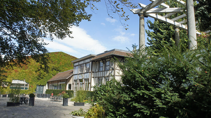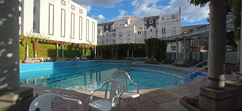 L'entrée depuis la rue de Lagrive longe la piscine et dessert une cour ombragée bornée par les bâtiments ; cet aménagement est également attribué à Édouard Redont. Le club-house de 1922 présente un style cottage avec cheminée et galerie à balustrade en bois. La cour porte des plaques mémorielles consacrées aux fondateurs et aux morts de 1939-1945. Soucieuse des coûts d'entretien, l'association a lancé en juillet 2021 un appel à mécènes pour sauvegarder la piscine.