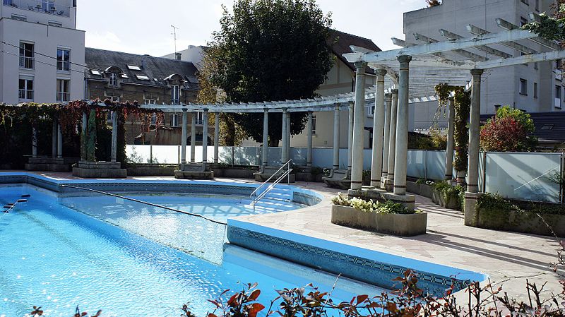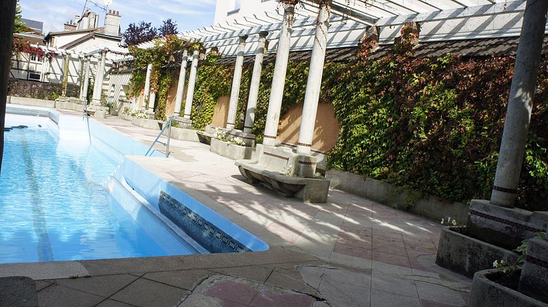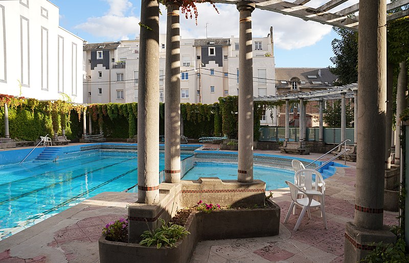 Construite en béton armé, la piscine se distingue par sa pergola, ses mosaïques, ses bacs et un décor à bandeau ; le béton bordant le bassin présente une teinte rouge évoquant les décors antiques. Les deux plongeoirs originels ont disparu, mais le site conserve deux bassins qui ont servi au développement du water-polo et du plongeon. Dès les années 1920, la piscine a également accueilli des concerts et des spectacles. Une mise en valeur récente par Olivier Rigaud a été marquée par la pose d'une plaque rue de Lagrive.