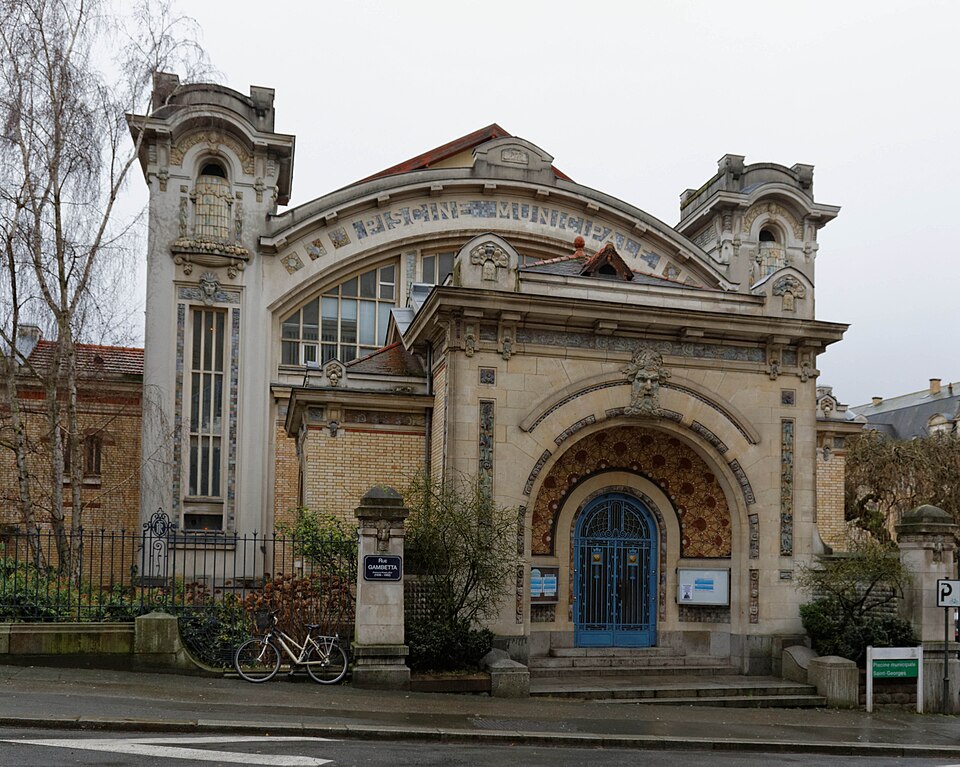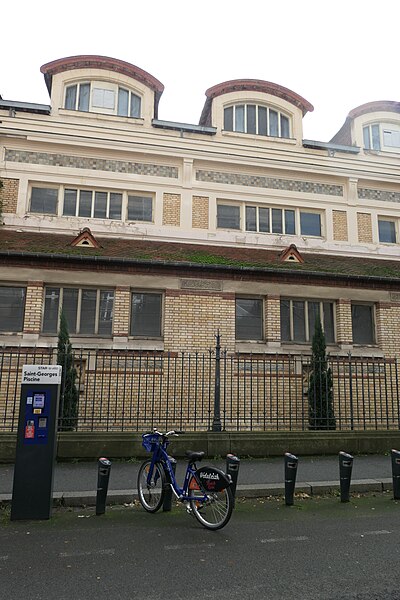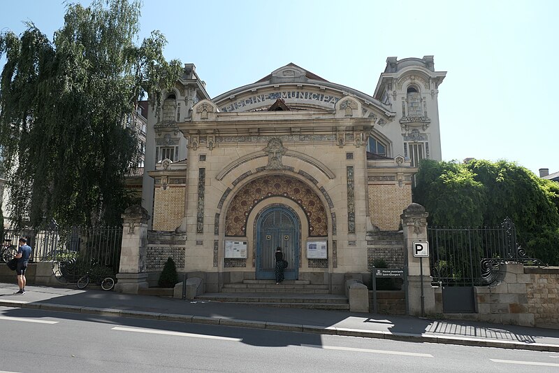 La piscine Saint-Georges est une piscine municipale située dans le centre-ville de Rennes, à l'angle des rues Gambetta et Victor Hugo, jouxtant le palais Saint-Georges au sud et le square de La Motte au nord. Le bassin mesure 33,33 × 14 m. L'idée de construire une piscine à cet emplacement remonte à 1834 ; le projet, retardé, a été repris et confié à l'architecte Emmanuel Le Ray. Emmanuel Le Ray, architecte de la ville, a conçu le projet en 1911 ; la piscine a été réalisée entre 1923 et 1926 sur décision du maire Carle Bahon, avec un financement partiel de l'État, et inaugurée le 4 juillet 1926. Le projet avait été défendu au fil du temps par Jean Janvier puis Alfred Daniel, et il suscita des critiques publiques, notamment dans le journal L'Ouest-Éclair. Le bâtiment a été édifié au nord de la caserne Saint-Georges, sur l'emplacement de l'ancienne église du couvent Saint-Georges. Les plans montrent un corps central flanqué de deux pavillons facilitant la distribution des entrées et, à l'est, des bains-douches répondant à une volonté hygiéniste de la municipalité et de l'architecte. Le bassin et les cabines sont distribués, au deuxième niveau, de part et d'autre du rez-de-chaussée et du premier étage, tandis qu'une coursive assure la visibilité vers le bassin central. À l'étage supérieur, une voûte en béton a été comblée par un faux plafond vers 1970 et une partie des cabines de douche du premier étage a été transformée en sauna dans les années 1970. La décoration extérieure a été réalisée par les céramistes parisiens Gentil et Bourdet, et la décoration des bassins et des bains publics par Isidore Odorico (fils) en émaux de Briare. Le programme décoratif — bassin, promenoirs, pédiluves et fonds des bacs — constitue l'une des réalisations majeures de l'Art déco en France. L'ensemble présente une diversité de matériaux : tuffeau, éléments de ciment soulignant les ouvertures, briques rouges et jaunes et frises de grès flammé. La grande frise du bassin, longue de 96 mètres et ornée d'émaux jaune-vert et bruns figurant de fines vaguelettes en sinusoïde, a été dégradée par l'usage du chlore et remplacée en 1999 par une copie fabriquée par un atelier italien et posée par un carreleur de Saint-Malo. La piscine illustre l'Art déco provincial et l'architecture hygiéniste de la première moitié du XXe siècle. Classée au titre des monuments historiques le 26 octobre 2016, elle a par ailleurs été désignée par le magazine Architectural Digest en 2017 comme la huitième plus belle piscine du monde. L'installation a accueilli une exposition de l'œuvre Museum of the Moon du plasticien britannique Luke Jerram, projetée au plafond, qui a contribué à sa notoriété internationale. À l'approche de son centenaire, le bâtiment a souffert de vétusté : des éclats de béton sont tombés du faux plafond en octobre 2022 et la piscine a connu des fermetures ponctuelles en 2024 pour un incident technique non communiqué et dans le cadre du plan de sobriété énergétique. En mai 2025 la ville a présenté un plan de rénovation de 28 millions d'euros visant à remettre l'édifice aux normes, améliorer la sécurité, restaurer l'Art déco et améliorer l'efficacité énergétique tout en restant « au plus proche de la version initiale des années 1920 », selon la maire Nathalie Appéré.