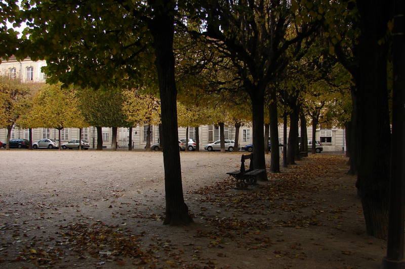 La place a des proportions plus modestes que ses deux voisines : elle forme un rectangle d'environ 80 par 60 mètres, soit près d'un demi‑hectare. Dès 1758, le forestier des eaux et forêts Nicolas Bernard fut chargé de planter plusieurs rangées d'arbres ; des tilleuls furent plantés en 1763, certains subsistent aujourd'hui. Les gravures de Dominique Collin et Yves‑Dominique Collin montrent la place avant et après la plantation des tilleuls ; six d'entre eux furent abattus lors d'une manifestation d'agents de l'ONF en mars 2012 et replantés huit mois plus tard.