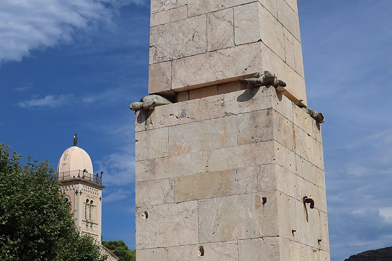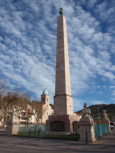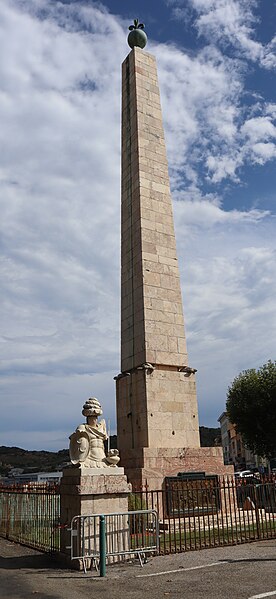 Port-Vendres est mentionné pour la première fois en 1272 et est probablement l'antique Aphrodisium ou Portus Veneris cité par Strabon, Pomponius Mela et Pline l'Ancien. Abandonné pendant le haut Moyen Âge, le port retrouve de l'importance avec la création du royaume de Majorque par Jacques Ier d'Aragon. Après le traité des Pyrénées et le rattachement du Roussillon à la France, Vauban signale la valeur du site de Port-Vendres à l'issue de visites en 1669, 1679 et 1680, puis dans un rapport daté du 2 mai 1679 ; Louvois n'adopte pas son projet et seules des fortifications sont réalisées entre 1702 et 1704. Le maréchal de Mailly, commandant en chef en Roussillon dès 1749, relaie l'idée du port ; rappelé à Versailles en 1753, il retrouve la région après la guerre de Sept Ans et est nommé directeur général des camps et armées des Pyrénées et des côtes de la Méditerranée en 1771. Dès le début du règne de Louis XVI, la construction d'un port fortifié destiné à assurer un trafic régulier en Méditerranée est décidée, et Mailly reprend le projet de Vauban en visant la création d'une ville nouvelle, inspirée de la franc‑maçonnerie et envisagée pour 12 000 habitants. La réalisation du port nécessite douze ans et des fonds qui ne sont obtenus qu'après le transfert de la responsabilité des travaux au secrétariat d'État à la guerre ; Mailly obtient également des diminutions des droits de commerce avec l'appui de Louis de Noailles pour attirer la navigation marchande. Il confie à l'architecte du roi Charles De Wailly, franc‑maçon et membre de l'Académie royale d'architecture, les plans de la ville nouvelle et la création d'une place monumentale dédiée à Louis XVI. Une brochure en faveur du peuplement paraît en 1779 et les travaux commencent peu après par la réalisation de la place. Au centre, De Wailly fait ériger un obélisque en marbre dont la première pierre est posée le 28 septembre 1780 ; le devis définitif date du 5 novembre 1781 et l'architecte apporte des modifications en 1782 et 1783. L'obélisque, dédié à la gloire du roi, est couronné d'un globe surmonté d'une fleur de lys et repose sur un dé aux angles ornés de tortues ; ce dé est décoré de rostres et de deux tablettes en forme de draperies portant des inscriptions en l'honneur de Louis XVI. Sous les rostres figurent des emblèmes maritimes et quatre bas‑reliefs en bronze appliqués sur les faces du soubassement commémorent l'abolition de la servitude en France, la restauration de la marine française, l'indépendance de l'Amérique et la liberté du commerce maritime. L'ensemble repose sur un socle en marbre de Villefranche. Faute de crédits, le projet s'interrompt et la ville nouvelle peine à se développer : on ne compte que 88 habitants en 1786 ; Port‑Vendres connaîtra un véritable essor après la conquête de l'Algérie. Le monument est dépouillé de ses éléments en bronze en 1793 ; les quatre bas‑reliefs du soubassement sont conservés au musée de Perpignan. L'obélisque et l'ensemble architectural qui l'entoure — les casernes du Fer à Cheval, le Pavillon du Dôme et le mur de quai avec ses deux escaliers — datent de la même époque. L'obélisque est classé au titre des monuments historiques par arrêté du 3 avril 1920 et le reste de la place est inscrit par arrêté du 17 octobre 1995.