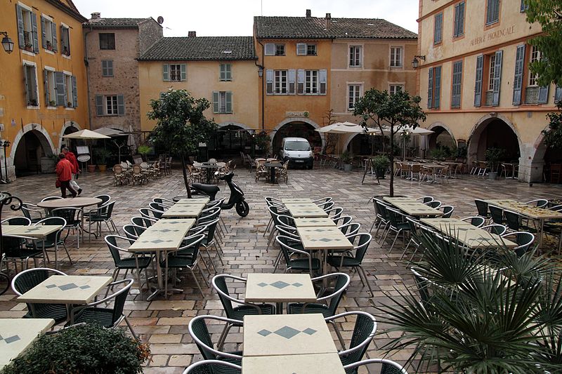 Place, avec son sol, l'ensemble des galeries à arcades qui la bordent, et les façades et versants de toiture correspondants des maisons qui en forment les côtés (y compris la partie des façades située sous les arcades) (cad. domaine public, non cadastré ; BM 158, 164 à 168 ; 173, 175, 230 à 234, 236, 359, 360) : inscription par arrêté du 12 juin 1992