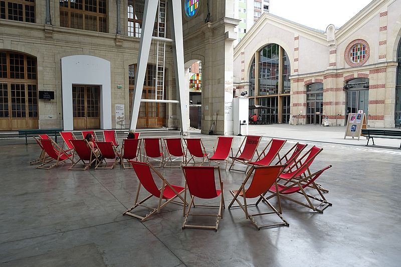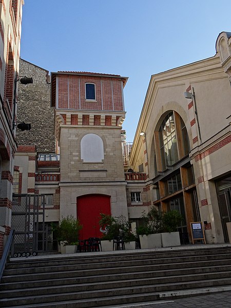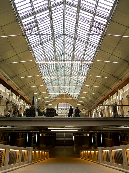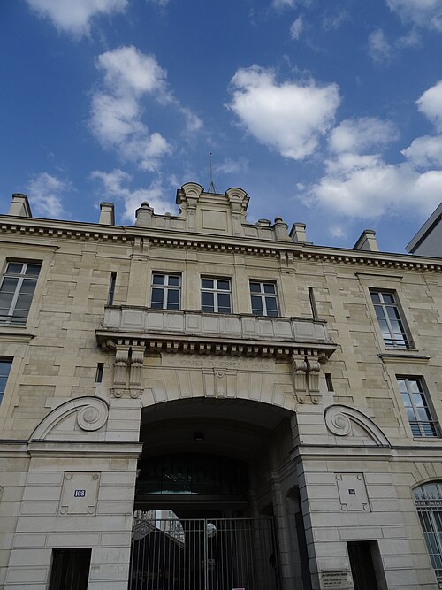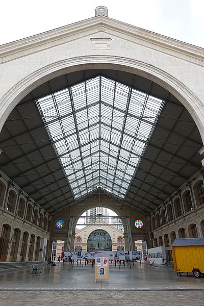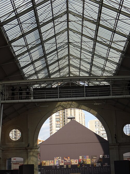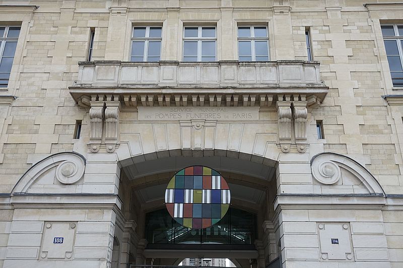 Le Service municipal des Pompes Funèbres est un édifice fonctionnaliste proche de l’architecture des grandes gares, construit entre 1872 et 1874 par Édouard Delebarre Debay et Godon sous la direction de Victor Baltard, sur l’emplacement des anciens abattoirs de Villette-Popincourt. Implanté le long des voies de la gare de Paris-Est, sur une parcelle de 26 000 m2 entre les rues d'Aubervilliers et Curial, il s’étend sur plus de 270 mètres et occupe une superficie comparable à celle de la place de la République. Conçu dans l’esprit de l’architecture industrielle, le bâtiment associe briques, larges verrières et structures de fonte et de fer. Il se compose de deux vastes halles couvertes, de quais de déchargement, de cours anglaises, d’écuries et de caves. Les façades et toitures donnant sur les rues d'Aubervilliers et Curial ainsi que les halles et leurs cours sont inscrites aux monuments historiques depuis le 21 janvier 1997. La composition en alternance de petites cours et de longues halles crée un axe visuel spectaculaire dont la théâtralité est renforcée par le caractère fermé des façades sur la rue.