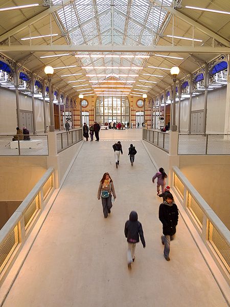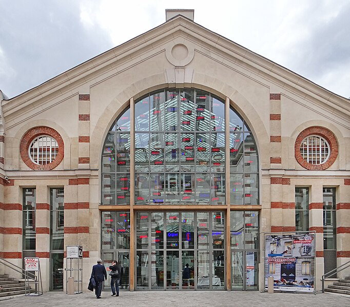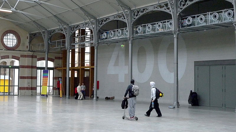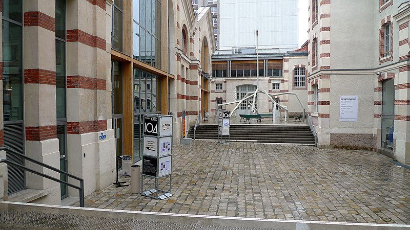 La Ville de Paris décida de protéger et de réhabiliter l’ensemble architectural et confia la maîtrise d’œuvre de la transformation aux architectes Marc Iseppi et Jacques Pajot (Atelier Novembre), dont la proposition fut jugée respectueuse de l’authenticité du site. Le Centquatre, établissement public de coopération culturelle connu sous le nom de Le CENTQUATRE‑PARIS ou le 104, a été inauguré sur ce site le 11 octobre 2008. Sur 39 000 m2 de planchers, dont 25 000 m2 exploitables, le Centquatre propose seize plateaux de fabrication artistique modulables, deux salles de diffusion de 200 et 400 places, des équipements mutualisés et des régies techniques. Chaque année, trente à trente‑cinq projets artistiques sont accueillis en résidence pour des durées de un à douze mois, et les anciennes écuries en sous‑sol ont été aménagées pour accueillir salons, expositions et événements professionnels. Statutairement EPIC de coopération culturelle, le Centquatre s’inscrit dans un réseau européen de nouveaux lieux d’art et vise à rapprocher production artistique et public en ouvrant régulièrement les ateliers. Il accueille de nombreuses manifestations (Jeune création depuis 2009, présentations des diplômés des Beaux‑Arts, Nuit blanche, Festival d’Automne, représentations du Théâtre de la Ville, festivals de photographie, de théâtre émergent et d’arts numériques). Un restaurant, un café et des commerces de proximité contribuent à la convivialité du lieu, tandis que des entreprises y organisent congrès et salons. Associé à la réhabilitation du quartier et à l’ouverture des Jardins d’Éole, le projet culturel vise à apporter une plus‑value aux habitants tout en favorisant la mixité sociale. Deux ans après l’ouverture, malgré une importante subvention municipale, le Centquatre fit l’objet de critiques médiatiques sur son attractivité et son lien avec le quartier, avant que l’arrivée de José‑Manuel Gonçalvès à la direction en 2010 n’impulse une nouvelle dynamique.