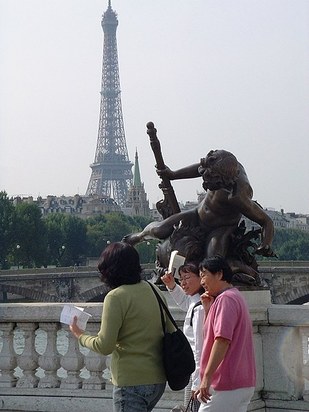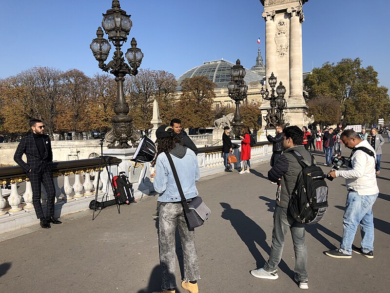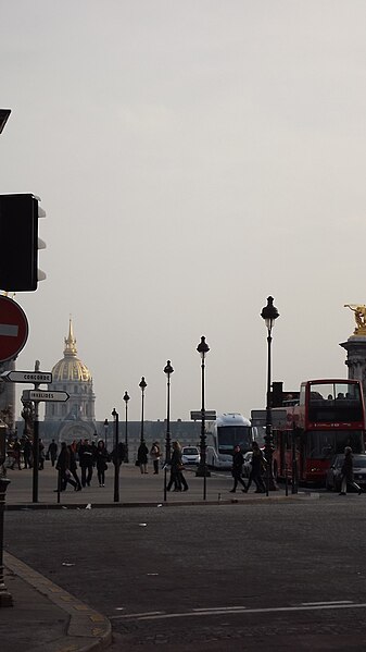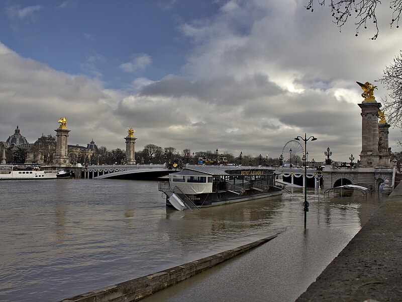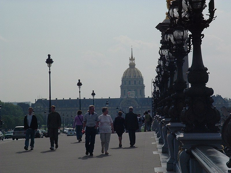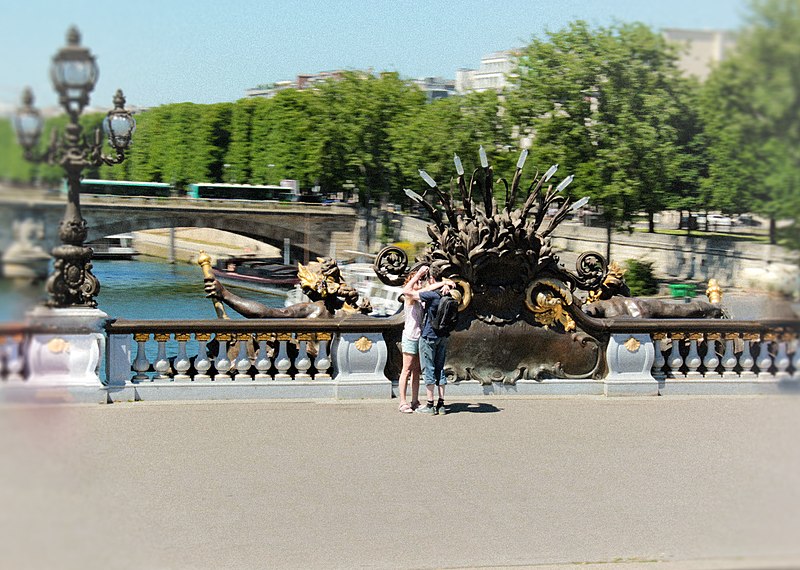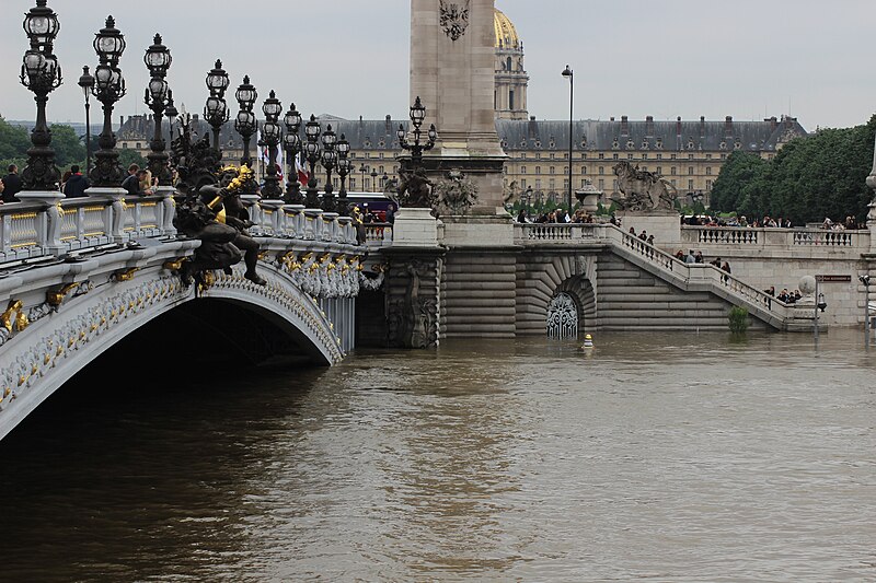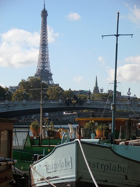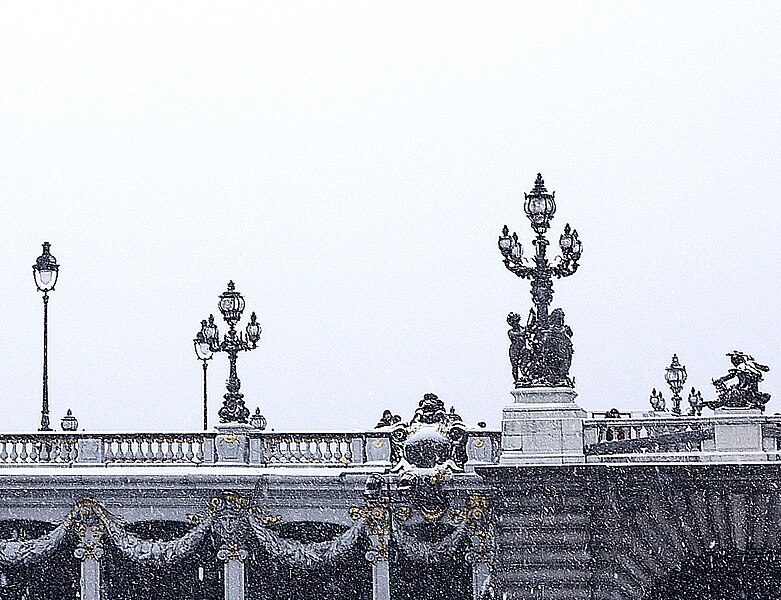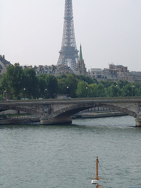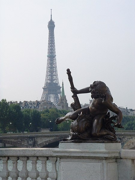 Le pont Alexandre‑III enjambe la Seine entre le 7e et le 8e arrondissement de Paris, reliant l'esplanade des Invalides à l'avenue Winston‑Churchill, à proximité du Petit Palais et du Grand Palais ; il se situe entre le pont de la Concorde et le pont des Invalides et est desservi par la station Invalides (métro lignes 8 et 13) et la gare RER C des Invalides. Il porte le nom du tsar Alexandre III et a été réalisé pour symboliser l'amitié franco‑russe à l'occasion de l'Exposition universelle de 1900 ; la première pierre fut posée le 7 octobre 1896 par le tsar Nicolas II, l'impératrice Alexandra Fedorovna et le président Félix Faure, et l'ouvrage fut inauguré le 14 avril 1900. Les ingénieurs Jean Résal, Amédée Alby et Joseph Grison assurèrent la structure tandis que les architectes Joseph Cassien‑Bernard et Gaston Cousin prirent en charge la décoration. Destiné à prolonger l'axe des Invalides vers les palais de l'Exposition, le pont répondait à des exigences de faible profil pour préserver la vue sur les Invalides, de circulation fluviale non entravée et d'une largeur adaptée à l'avenue prolongée ; le tablier mesure aujourd'hui 45 mètres de large. L'ouvrage est une arche métallique unique de 107 mètres de portée avec trois articulations, reposant sur d'imposantes culées massives qui contiennent des tunnels en pierre pour la circulation de la berge ; la charpente est en acier moulé et associe éléments d'acier et voussoirs de fonte moulée. Les fondations furent réalisées sous caissons pressurisés selon le procédé Triger ; la mise en œuvre donna lieu à vingt‑neuf accidents de décompression plus ou moins graves et à un décès parmi les ouvriers. Le pont, long de 160 mètres pour la totalité de l'ouvrage, est classé monument historique depuis le 29 avril 1975, labellisé « Patrimoine du XXe siècle » et situé dans le périmètre du secteur sauvegardé du 7e arrondissement ainsi que dans le site inscrit « Ensemble urbain à Paris ». Sa décoration, riche et étudiée en regard du rôle urbain de l'ouvrage, repose notamment sur quatre pylônes surmontés de groupes équestres en bronze doré et sur trente‑deux candélabres en bronze réalisés par l'établissement Lacarrière ; ces éléments et de nombreux autres reliefs et statues ont été exécutés par des sculpteurs tels qu'Emmanuel Frémiet, Georges Récipon, Jules‑Félix Coutan, Léopold Morice, Pierre Granet, Jules Dalou, Georges Gardet et Henri Désiré Gauquié, qui signent entre autres les Renommées, les Nymphes de la Neva et de la Seine, les Amours soutenant les lampadaires et les groupes de lions. Les décorations à la base des pylônes évoquent différentes périodes de l'histoire de France et les masques, guirlandes et motifs du tablier accompagnent le rythme des potelets de liaison. Le pont a connu plusieurs changements de couleur avant une restauration unique en 1998 qui lui a rendu son aspect d'origine. Les culées ont aussi accueilli des activités culturelles et nocturnes : la culée rive droite abrita entre 2006 et 2017 la boîte de nuit Showcase puis, en 2017, fut confiée à plusieurs associations qui y ouvrirent Le Génie d'Alex, un centre culturel éphémère ; la culée rive gauche fut occupée de 1999 à 2012 par un squat artistique animé par l'association Les Gardiens du pont, dont l'exploitation fut remise ensuite à un investisseur. Le pont Alexandre‑III apparaît dans de nombreux films, de productions françaises et internationales, et a servi de décor à des scènes emblématiques ; il a également été le lieu de tournage de clips musicaux, notamment celui d'Adele pour Someone like you (2011) et des prises de vues pour Mariah Carey (Say Something, 2006). Enfin, lors des Jeux olympiques de Paris 2024, le pont a constitué le point de départ et d'arrivée des épreuves de triathlon.
