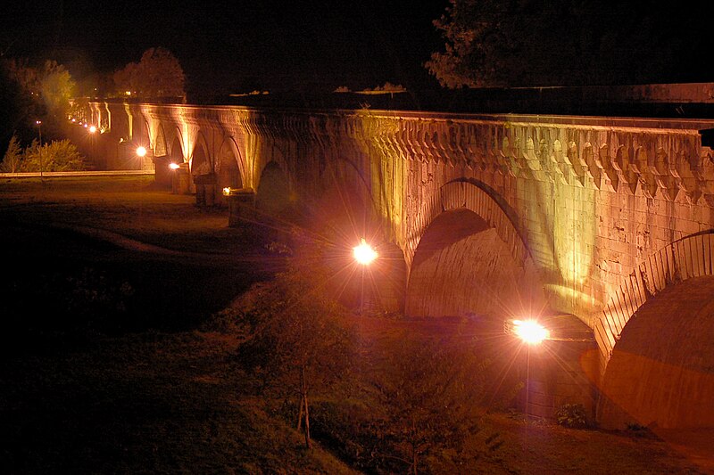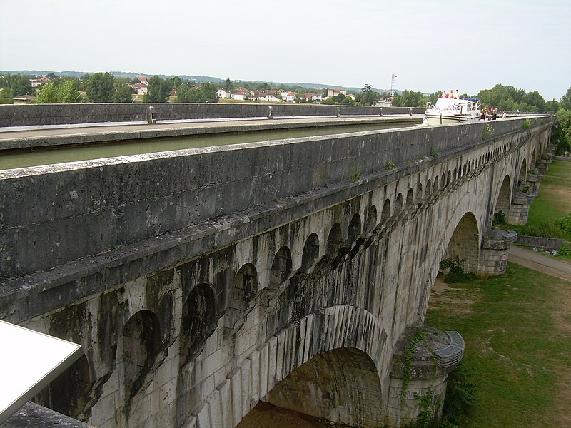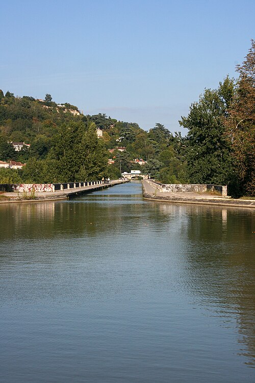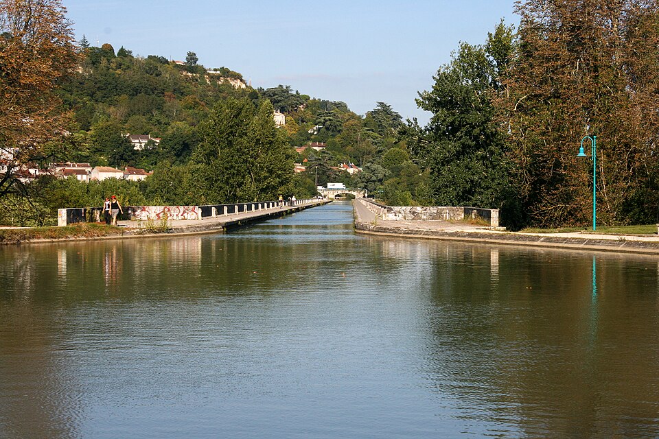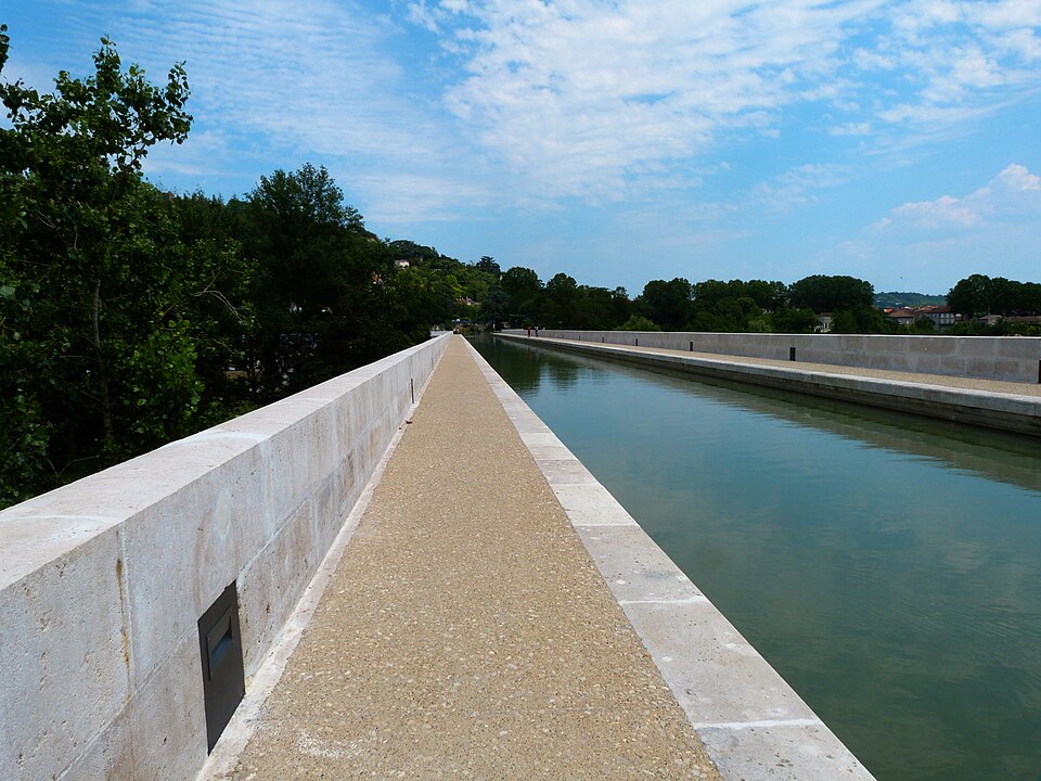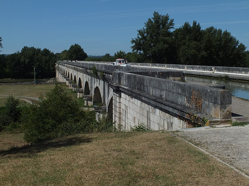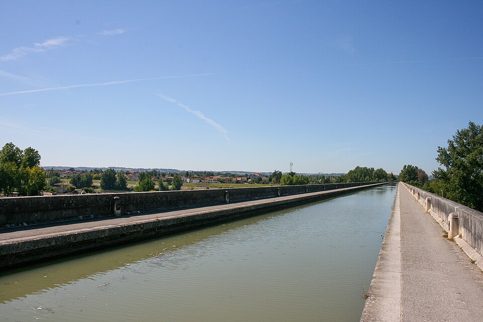 Le pont-canal qui enjambe la Garonne avec ses deux bassins d'attente et leurs écluses (cad. non cadastré, domaine public) : inscription par arrêté du 21 août 2003 - L'ensemble du dispositif lié au pont-canal, à savoir les deux bassins d'attente amont et aval, situés à chaque extrémité du pont, les trois grands bassins aval avec leurs quatre écluses correspondantes et leur quatre maisons d'éclusiers, les berges plantées d'arbres (chemins de halage) (cad. bassin amont et ses berges : Agen, domaine public, non cadastré ; bassin aval,les trois grands bassins aval, les quatre écluses et maisons d'éclusiers, les berges : Le Passage, domaine public, non cadastré) et la maison des Ponts et Chaussées abritant le service de gestion du dispositif (cad. Agen BI 5) : inscription par arrêté du 12 juillet 2012