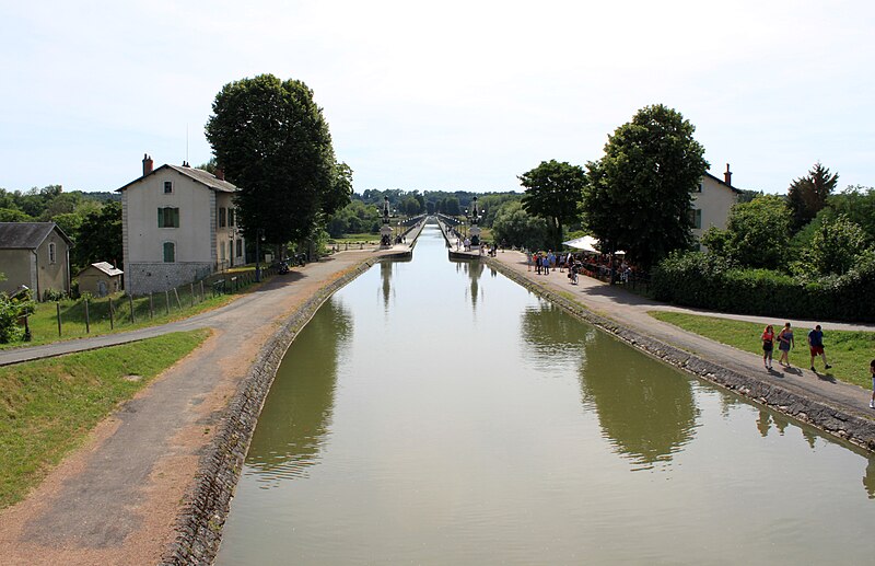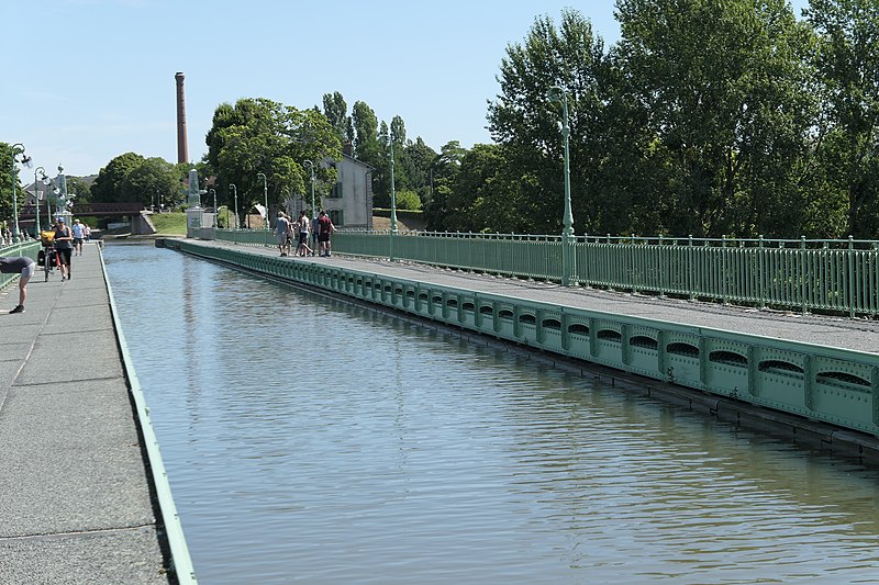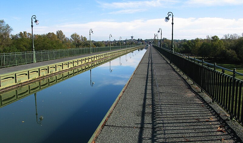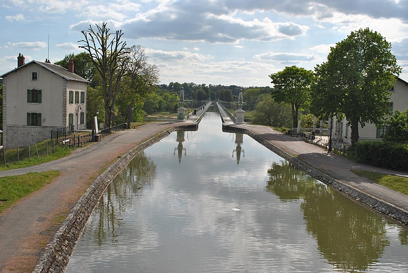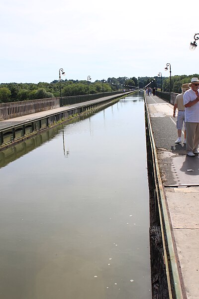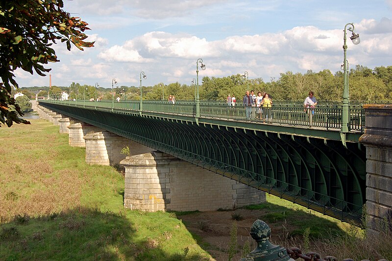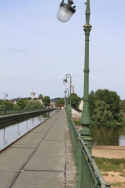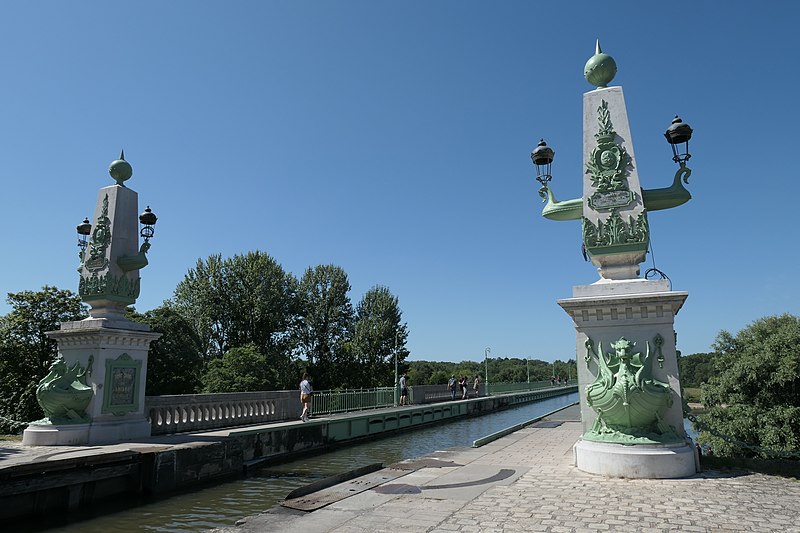 Le pont-canal de Briare porte le canal latéral à la Loire au‑dessus de la Loire, sur les communes de Briare et de Saint‑Firmin‑sur‑Loire, dans le Loiret (Centre‑Val de Loire). Sa réalisation répondait à la nécessité de moderniser le réseau fluvial après l'achèvement du canal latéral à la Loire et à la dangerosité du franchissement de la Loire à Châtillon‑sur‑Loire par le chenal endigué de Mantelot. Un pont‑canal avait été envisagé lors de la construction du canal latéral (1827‑1838), mais on attendit le développement des structures métalliques en acier doux pour implanter l'ouvrage à Briare afin de ne pas gêner l'écoulement en crue. Le projet, déclaré d'utilité publique en 1889, a été conçu par les ingénieurs Léonce‑Abel Mazoyer, Charles Sigault et Pierre Moreau dans le cadre du gabarit Freycinet. Les fondations et la structure maçonnée furent réalisées par Gustave Eiffel à partir de 1890, la cuvette métallique étant fournie par l'entreprise Daydé & Pillé de Creil, sous la direction de Léonce‑Abel Mazoyer. Les travaux d'ossature métallique se déroulèrent de 1891 à 1893, le chantier s'achevant en 1895 par l'installation d'une petite usine électrique pour l'éclairage, puis par l'ouverture à la circulation le 16 septembre 1896. Long de 662 mètres, l'ouvrage est constitué d'un caisson métallique en U formant une cuvette en acier doux, soutenu par des piles maçonnées qui délimitent quinze travées d'environ 37 mètres, laissant largement passer les crues. La voie d'eau a une largeur de six mètres, un mouillage de 2,2 mètres et un tirant d'eau de 1,80 mètre ; elle est bordée de deux trottoirs et de passerelles en surplomb. L'accès au canal vers Briare est encadré de chaque côté par une maison éclusière, précédée d'un petit pont métallique, et des portes de garde se situent aux extrémités vers Briare et vers Saint‑Firmin. L'ornementation comprend notamment deux colonnes rostrales, huit rostres, des chimères et des lampadaires fabriqués par les fonderies Magnard et Compagnie de Fourchambault et par L. Gasne à Tusey. Outre la Loire, le pont enjambe l'ancien canal latéral à la Loire de 1838 juste avant d'entrer dans Briare ; il se situe sur le canal latéral et non sur le canal de Briare, ce dernier étant franchi un peu en aval par un ultime pont‑canal en maçonnerie à la Cognardière. Longtemps, avec ses 662 mètres, le pont‑canal de Briare a été le plus long pont‑canal métallique du monde ; il a été dépassé en longueur en 2003 par le pont‑canal de Magdebourg. Le coût du projet avait été estimé à 6 500 000 francs. L'inauguration, discrète, suscita des réactions locales concernant des inondations de caves attribuées au nouvel ouvrage, allégations non établies et liées à de fortes pluies antérieures. Le pont‑canal a favorisé le développement du transport Loire‑Seine grâce à la mise au gabarit Freycinet du réseau fluvial et il est inscrit au titre des monuments historiques depuis le 12 mai 1976. Léonce‑Abel Mazoyer signa l'année suivante un ouvrage analogue, le pont‑rivière de l'Oudan, et le pont‑canal de Briare a par ailleurs été représenté sur un timbre émis le 7 juillet 1990 et mis en scène dans de courtes séquences télévisées en 1973.