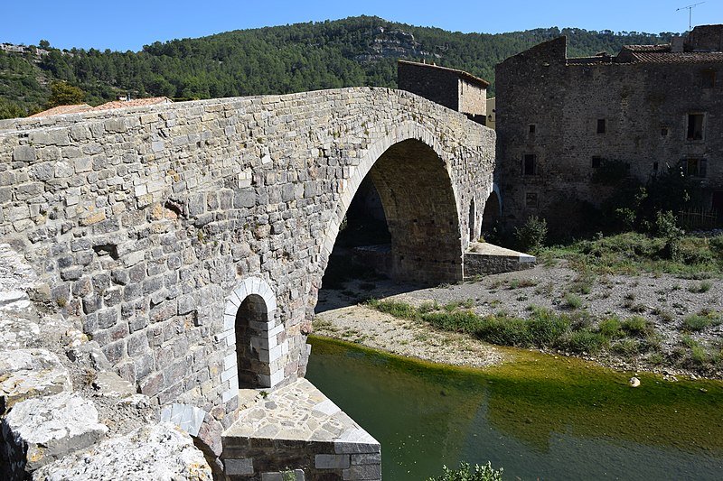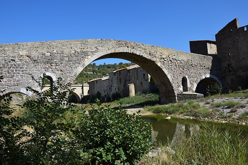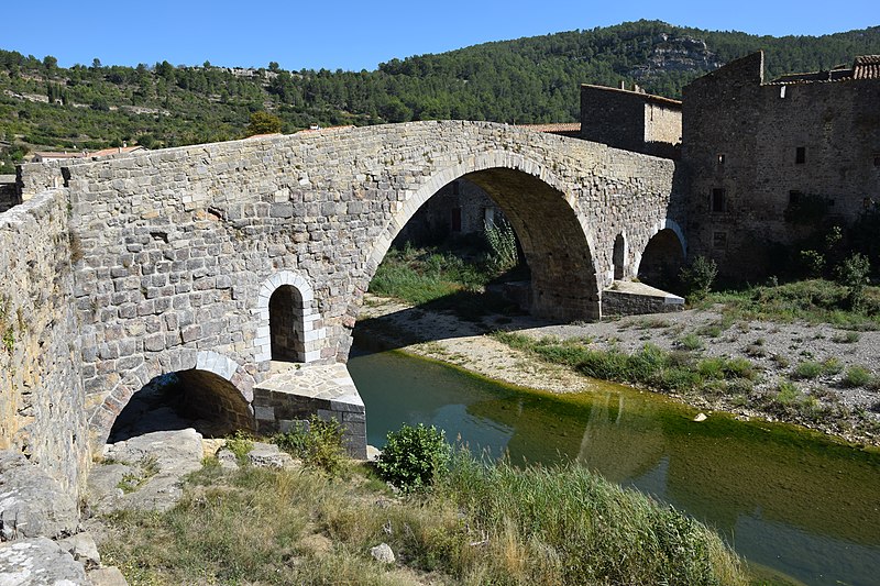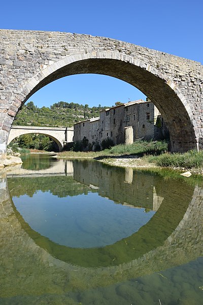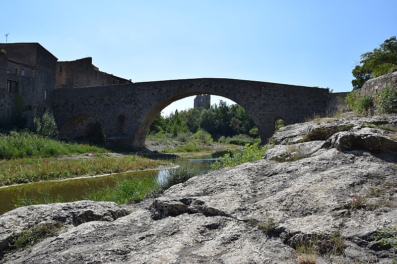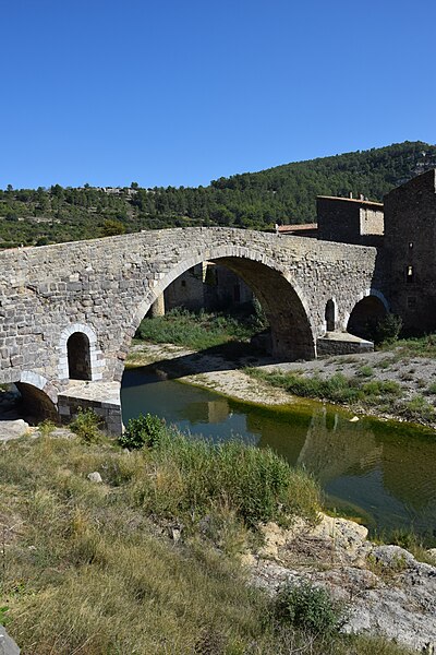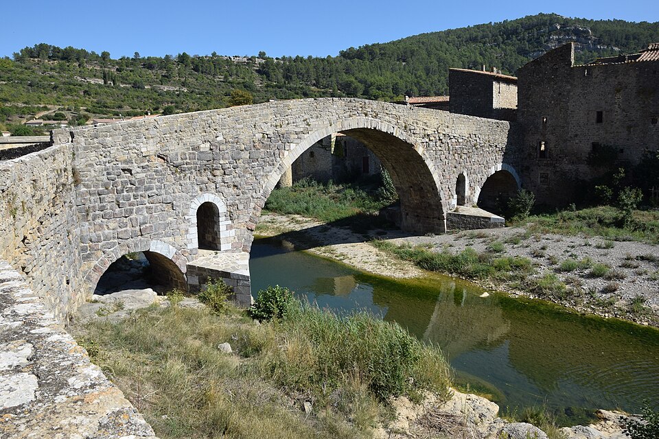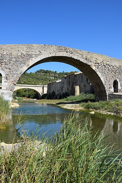 Le Pont de l'Abbaye, dit aussi Pont-Vieux, enjambe l'Orbieu à Lagrasse. Élevé par l'abbaye, il se compose d'une grande arche centrale flanquée de deux plus petites. Les piles sont allégées par deux passages voûtés en berceau qui s'ouvrent au-dessus des avant-becs. Le pont est attesté dès 1303. Certaines sources affirment qu'il n'a jamais été retouché, mais il a été remanié aux XVIIe et XIXe siècles : ses piles étaient autrefois surmontées de deux tours, abattues en 1618 car elles menaçaient la stabilité de l'ouvrage. L'édifice a été classé au titre des monuments historiques en 1907.