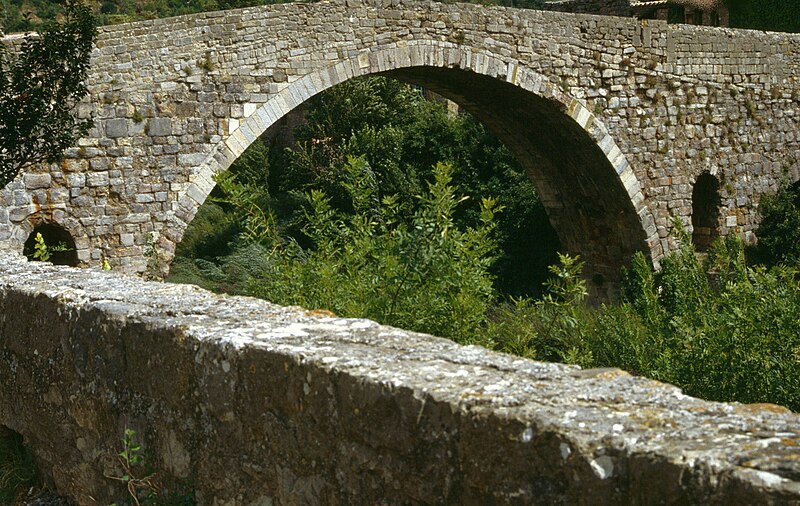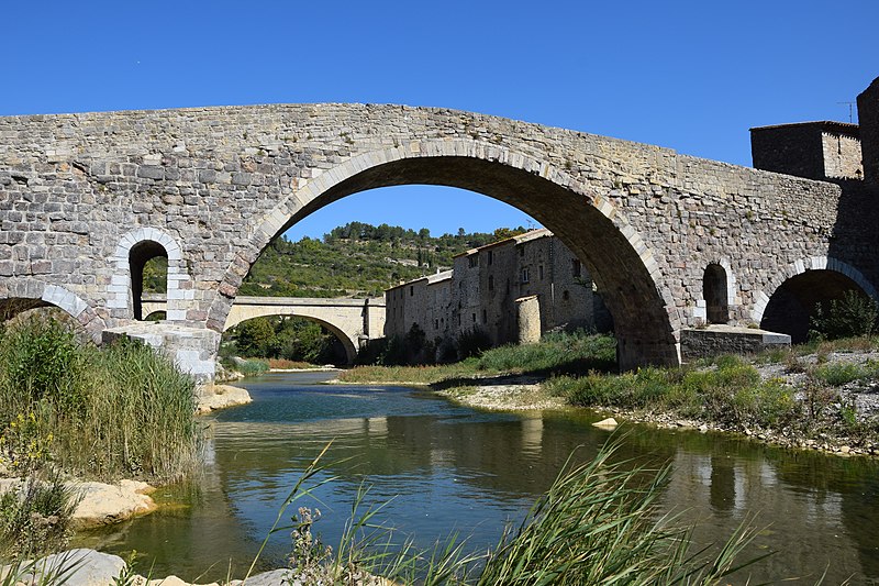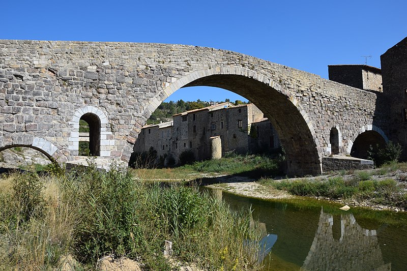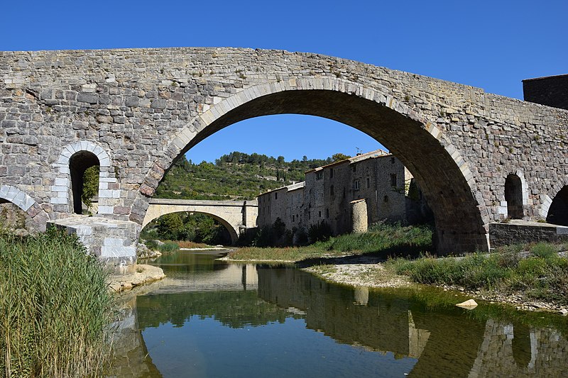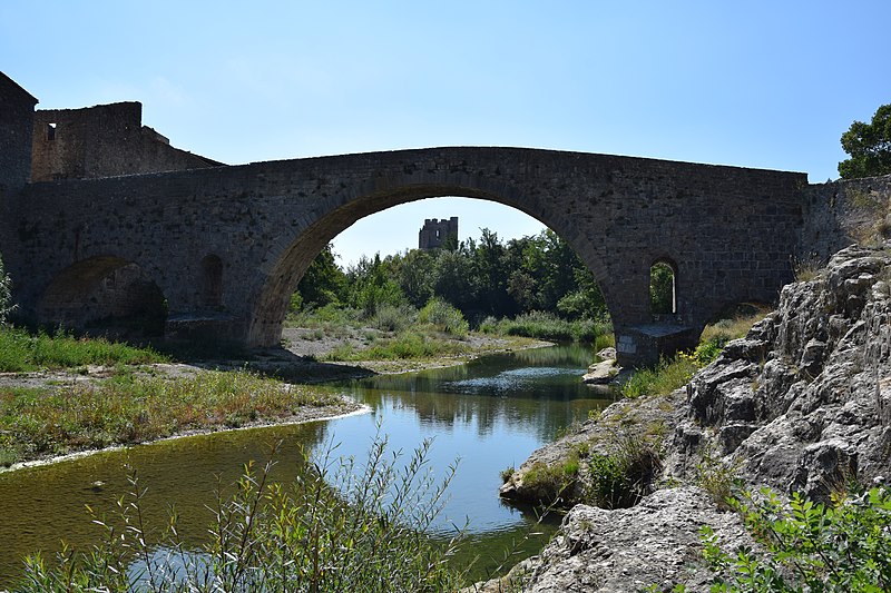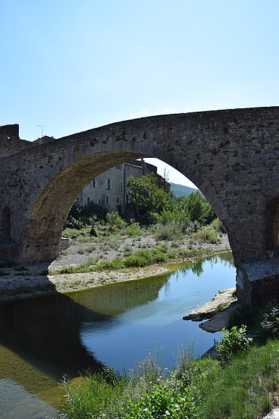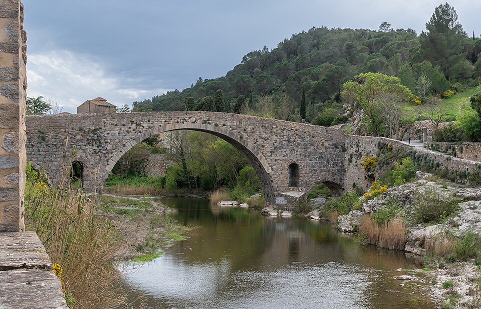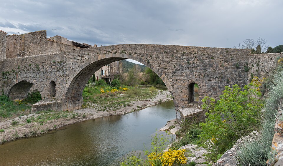 Le Pont de l'Abbaye, dit aussi Pont-Vieux, enjambe l'Orbieu à Lagrasse. Élevé par l'abbaye, il se compose d'une grande arche centrale flanquée de deux plus petites. Les piles sont allégées par deux passages voûtés en berceau qui s'ouvrent au-dessus des avant-becs. Le pont est attesté dès 1303. Certaines sources affirment qu'il n'a jamais été retouché, mais il a été remanié aux XVIIe et XIXe siècles : ses piles étaient autrefois surmontées de deux tours, abattues en 1618 car elles menaçaient la stabilité de l'ouvrage. L'édifice a été classé au titre des monuments historiques en 1907.