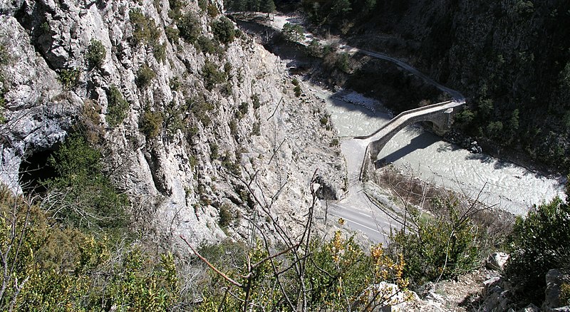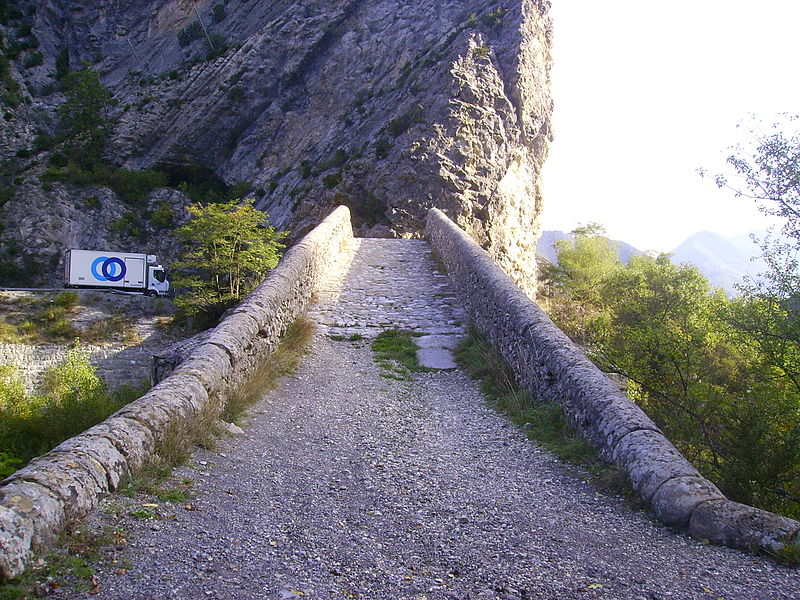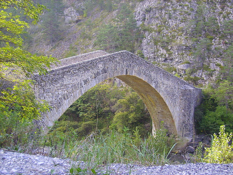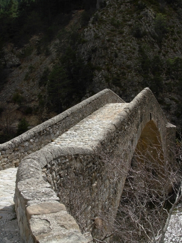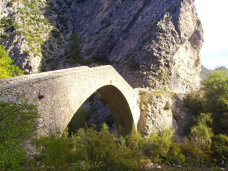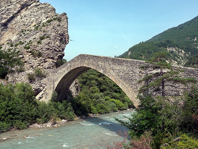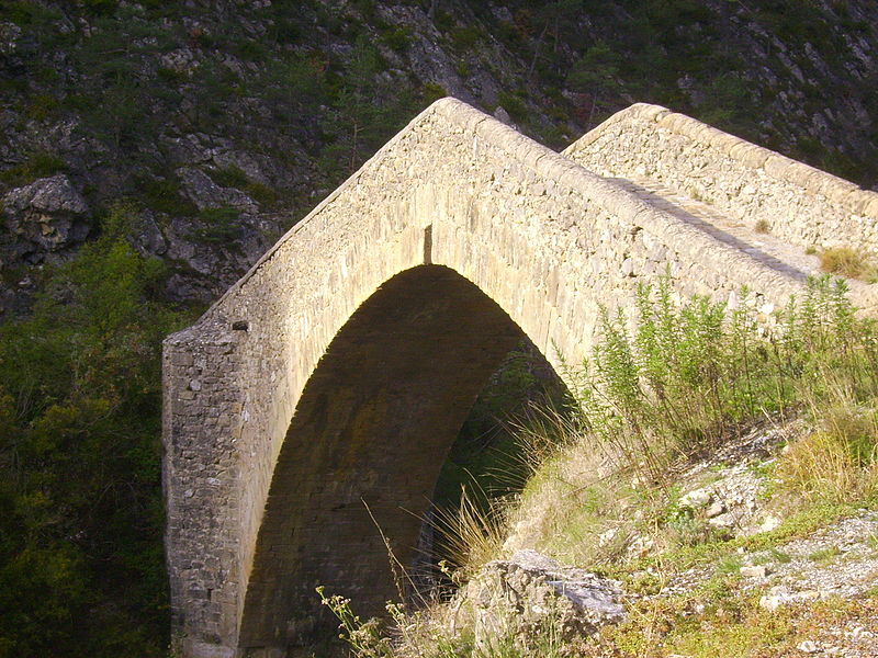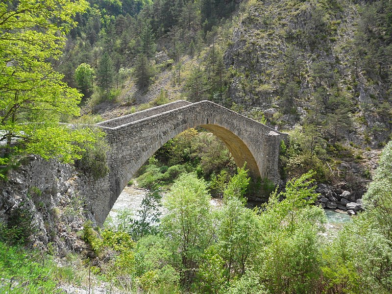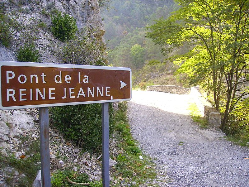 Le pont de la Reine Jeanne, situé sur la commune de Saint-Benoît (Alpes-de-Haute-Provence), permet de franchir le Coulomp. L'existence d'un pont en cet endroit est attestée dès 1296. À la fin du XVIIe siècle, la communauté demanda la reconstruction d'un ouvrage; des devis furent établis et un pont en bois fut construit puis, d'après les autorités locales, rapidement ruiné. Au début du XVIIIe siècle, les commissaires décidèrent de relancer les travaux et l'architecte Vallon dressa un nouveau devis en 1727, indiquant avoir commencé des réparations dès 1714. Le chantier fut adjugé lors d'une enchère le 15 février 1728 à Joseph Blanc, entrepreneur du Fugeret, et le prix fut révisé le 22 avril 1728. Le projet de 1727 fut ensuite modifié pour porter la portée de l'arc de 20 à 32 mètres, afin d'éviter d'implanter la culée droite sur une zone de graviers. Les travaux s'achevèrent au début des années 1730; la réception apparaît dans les documents de 1733 et 1734, et elle est confirmée en 1743. Le relevé du cadastre napoléonien représente quatre contreforts qui ne sont pas mentionnés dans les documents du début du XVIIIe siècle ; si ces contreforts ont existé, les deux situés en rive gauche ont disparu au XIXe ou au XXe siècle. La maçonnerie du pont présente un double rouleau : le parement intérieur est en pierres bien appareillées, le second rouleau est plus fruste, disposition comparable à celle du pont du Fugeret. Au XVIIIe siècle, l'ouvrage était appelé pont de Saint-Benoît ; l'appellation « pont de la Reine Jeanne » est plus récente et ne figure pas sur le cadastre de 1830, même si ce nom semblait fixé lorsque le pont fut inscrit aux monuments historiques le 19 janvier 1928 ; il renverrait probablement à Jeanne Ire de Naples. Le pont fut endommagé en 1940; le parapet aval fut réparé en 1942. Une campagne de consolidation de la maçonnerie a été conduite en 1978 par l'entreprise L. Mapelle de Sisteron sous la direction de l'architecte J.-P. Ehruan. Dans le cadre de la Mission patrimoine 2024, une aide de 50 000 euros a été attribuée pour contribuer à remédier au manque d'entretien et à la sensibilité du monument aux intempéries et à l'érosion des matériaux. L'ouvrage présente une ouverture de 29 mètres, une hauteur sous clé de 12,5 mètres et une longueur du tablier, au niveau des parapets, de 42,15 mètres ; la chaussée entre parapets mesure 2,70 mètres de largeur, les parapets ont une épaisseur de 0,40 mètre et la culée en rive droite une largeur de 4,20 mètres.
