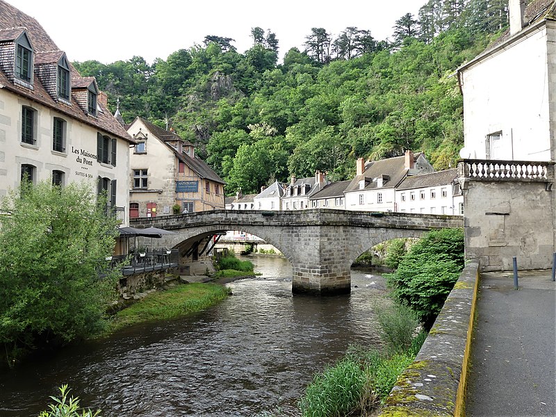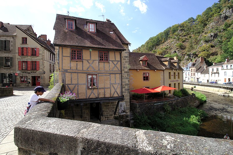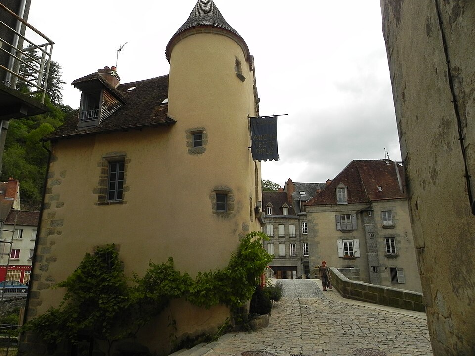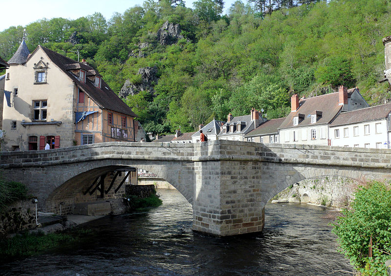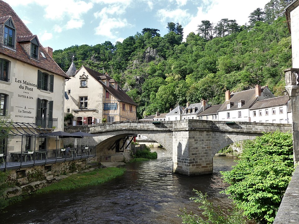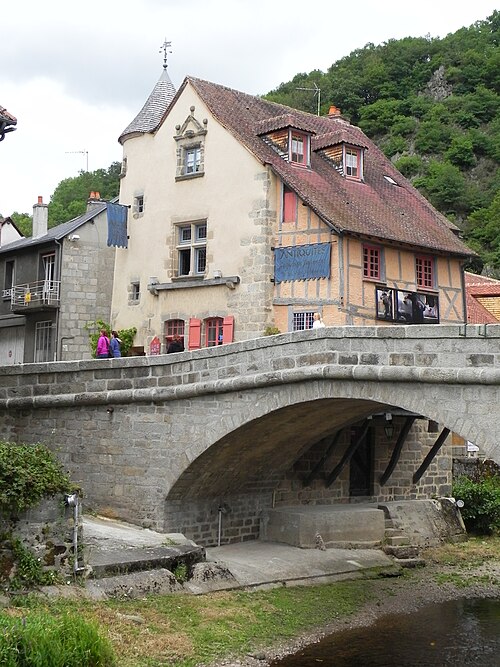Le pont de la Terrade, situé à Aubusson (Creuse, Nouvelle-Aquitaine), est inscrit à l'inventaire des monuments historiques. À l'origine il était en bois avec une pile en pierre et constituait le seul point de franchissement de la Creuse pour la route principale vers Limoges qui traversait le quartier de la Terrade. Des actes datés du 11 décembre 1578 et du 7 janvier 1579 indiquent que le pont en bois comportait deux travées, une pile médiane en pierre et qu'il était couvert ; la vente d'une place se situe au droit de la pile intermédiaire. Dans une requête du 25 août 1607, il est signalé que le pont était à nouveau en ruine et dangereux, plusieurs charrettes s'y étant perdues les années précédentes. Le pont en pierre actuel a été édifié entre 1638 et 1641 avec les pierres provenant de la démolition du château dit Le Chapitre, ordonnée en 1632 par le cardinal de Richelieu ; ce château avait appartenu aux premiers vicomtes d'Aubusson. Des pierres de ce même château ont servi en partie à la construction de la maison des Vallenet. Le pont est resté longtemps couvert et deux tourelles, placées au faubourg, ont été édifiées à ses extrémités, assurant le rôle d'octroi ; aujourd'hui une seule tourelle subsiste. À la fin du XVIIIe siècle, la route pour Limoges a été reportée sur le pont des Récollets, ce qui a permis de conserver le pont de la Terrade sans modifications. L'ouvrage comporte deux arches en arc brisé reposant sur une pile centrale munie de deux forts brisants triangulaires. Les arches sont segmentaires et présentent des ouvertures de 9,15 mètres en rive droite et de 11,94 mètres en rive gauche ; la pile a une épaisseur de 4,78 mètres et comporte un avant-bec et un arrière-bec triangulaire servant de refuges. La largeur entre parapets mesure 4,28 mètres. À la sortie du pont, en rive gauche côté aval, se trouve la maison Chirac.