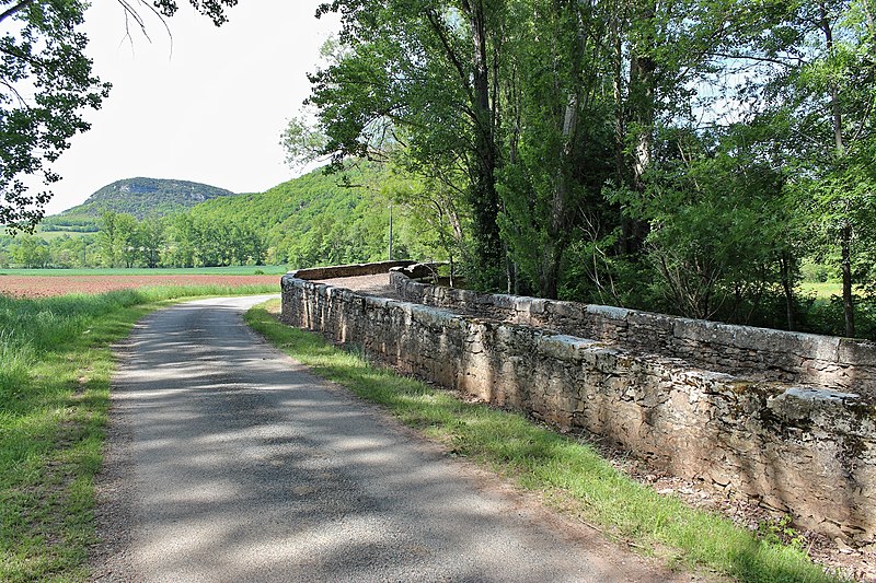 Le pont, long de quatre-vingt-six mètres et composé de trois arches en plein cintre, est construit en appareil irrégulier de calcaire local. Il assurait autrefois le passage du chemin reliant Puycelsi au village de Laval, siège d'une communauté religieuse au Moyen Âge. Son tracé forme une ligne brisée très prononcée. Il doublait la largeur du cours d'eau, alors sujet à de fortes crues. En 1974, lors du remembrement, le cours de la Vère fut détourné et le pont désaffecté.