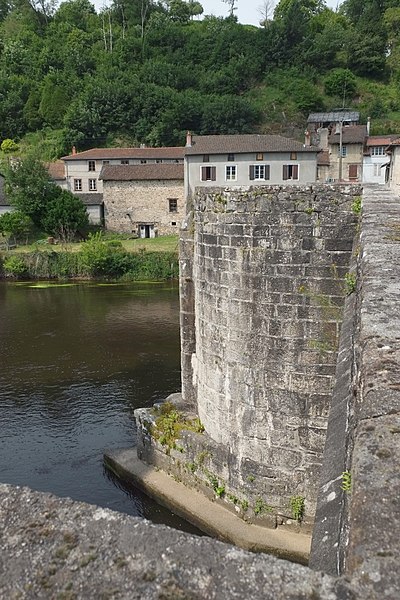 Le pont de Noblat, dit aussi le Vieux Pont, franchit la Vienne à Saint-Léonard-de-Noblat (Haute-Vienne). Ouvrage en pierre, il est présenté comme un pont en arc français. Des mentions écrites datées de 1224 et 1262 attestent son existence ; il a été réparé ou reconstruit vers 1270. Le pont comporte deux culées, trois piles et quatre arches, ainsi qu’un tablier muni de refuges, y compris sur les arrière-becs. La pile la plus proche de la rive droite présente un avant-bec en amande souligné par une colonnette qui aurait pu être couronnée d’une croix ; ce type de pile caractérise un groupe de quinze ponts médiévaux, dont onze en Limousin. Les deux autres piles sont en éperon triangulaire et les arches sont en arc brisé. Le parapet a été refait au XIXe siècle. En 1901, la deuxième arche à partir de la rive droite a été refaite en plein cintre. La deuxième arche à partir de la rive gauche, en arc brisé, a été détruite le 14 juillet 1944 par des résistants et reconstruite en 1947 en plein cintre ; une autre arche centrale, détruite à la fin de la guerre, fut elle aussi reconstruite en 1947 en plein cintre. Le pont est inscrit au titre des monuments historiques depuis le 5 juin 2007.