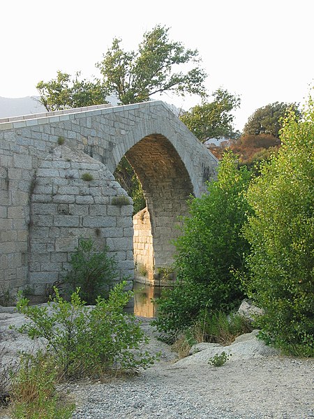 Le pont de Spina-Cavallu (Ponti di Spin'à Cavaddu) est un ouvrage en arc plein cintre franchissant le Rizzanese, situé en Alta Rocca entre Propiano et Sartène (commune de Sartène). Ses piles reposent sur des massifs rocheux généralement immergés et sont protégées, en amont comme en aval, par quatre becs en maçonnerie de granit gris destinés à rompre la force des matériaux charriés par la rivière. L'ouvrage mesure environ 64 ou 65 mètres de longueur, 2,60 mètres de largeur et son arc s'élève à 7,7 mètres au‑dessus du niveau de l'eau. Le nom du pont fait référence à la forme arquée du tablier, qui évoque le dos d'un cheval. L'attribution chronologique et culturelle du pont varie selon les sources : il est parfois présenté comme un pont pisano-génois, parfois attribué aux Pisans au XIIIe siècle, tandis que d'autres documents évoquent une construction au milieu du XVIe siècle. Une source attribue la construction à l'architecte Masciu Maternato, originaire du continent italien et lié à Sorbollano, qui serait également l'auteur du campanile de Carbini. L'ouvrage a fait l'objet de remaniements aux XVIIIe et XIXe siècles. Partiellement emporté par la crue du Rizzanese et du Fiumiccicoli en 1993, il a été restauré en 1995 par l'entreprise de maçonnerie Pieretti sous la direction des architectes Bernard Fournié‑Eche et Christophe Bizoux. Il est classé au titre des monuments historiques par arrêté du 22 octobre 1976. Depuis Propiano, on rejoint le pont en suivant la route nationale N196 en direction de Sartène, puis en tournant à gauche sur la D268 vers Sainte‑Lucie‑de‑Tallano ; le pont se trouve à trois kilomètres de la cansa.