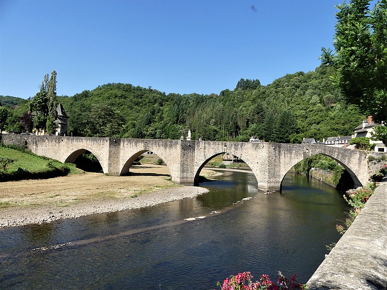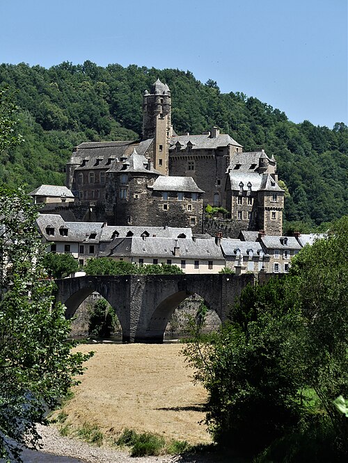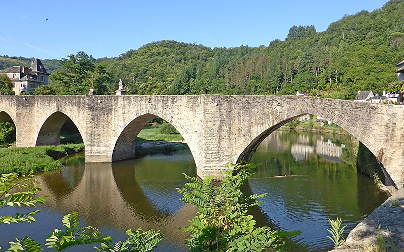 Le pont dit d'Estaing enjambe le Lot entre Estaing (rive droite) et Sébrazac (rive gauche), dans le quart nord‑est de l'Aveyron. Initiée par l'évêque de Rodez François d'Estaing, sa construction a été entreprise par les habitants d'Estaing à partir de 1490 et s'est achevée au début du XVIe siècle. Bâti en schiste et couronné de calcaire, l'ouvrage présente quatre arches gothiques à double rouleau. Ses trois piles sont protégées par des becs, triangulaires vers l'amont et rectangulaires vers l'aval. À l'extrémité sud, sur la rive gauche, un oratoire appelé Cap del Pònt fut béni en 1524 ; il a ensuite été remplacé par une chapelle, dédiée en 1727 à Notre‑Dame‑des‑Sept‑Douleurs. La pile centrale porte, côté aval, la statue de l'évêque François d'Estaing sculptée par François Mahoux en 1866, et côté amont une croix en fonte. Le pont assure la circulation routière sur la route départementale 22 et, à son extrémité sud, est traversé par les sentiers de grande randonnée GR 6 et GR 65 (via Podiensis). L'édifice est protégé : il a été inscrit au titre des monuments historiques le 29 septembre 2005 et figure depuis 1998 au patrimoine mondial de l'UNESCO au titre des chemins de Saint‑Jacques‑de‑Compostelle en France. Matériaux, proportions et éléments sculptés témoignent de son intérêt architectural et patrimonial dans l'histoire locale.