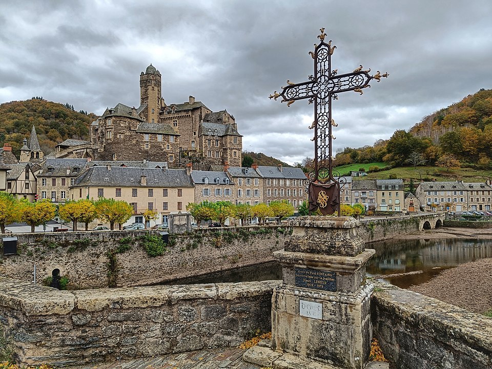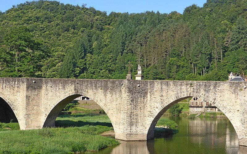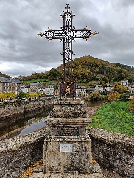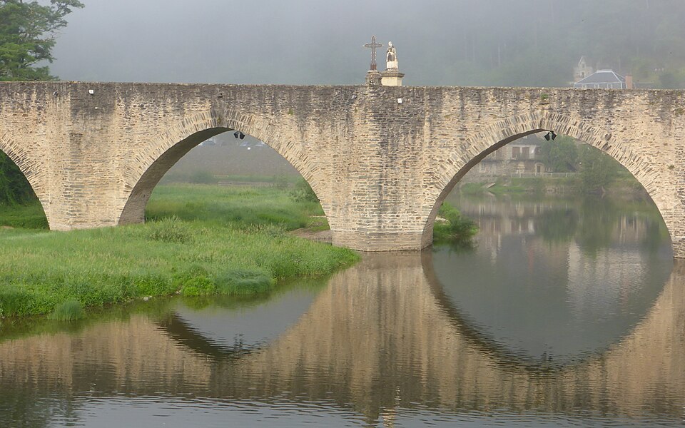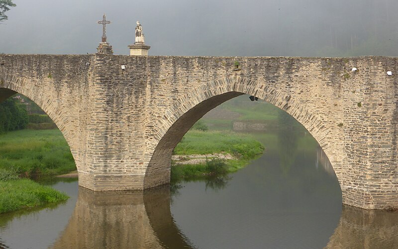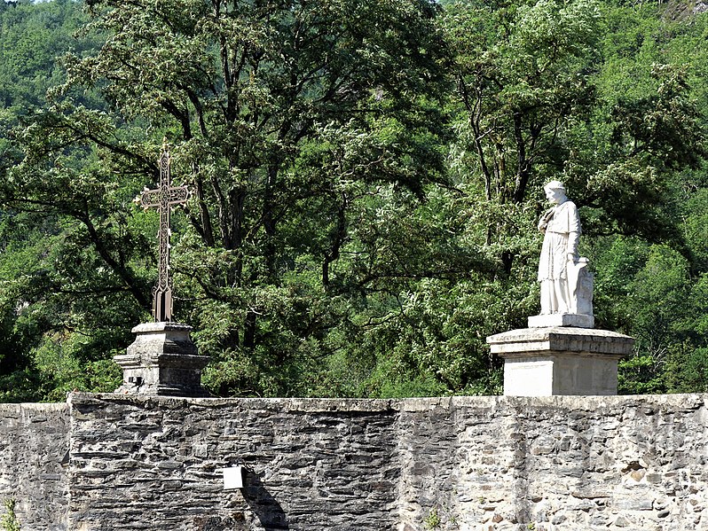 Le pont avec sa croix et sa statue de François d'Estaing (cad. non cadastré, domaine public ; Estaing : à la limite de la parcelle AB 46 ; Sébrazac : à la limite de la parcelle AB 49) : inscription par arrêté du 29 septembre 2005