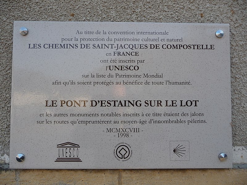 Le Pont dit d'Estaing fait partie des 71 monuments ainsi que 7 portions de chemins sont inscrits depuis 1998 sur la liste du patrimoine mondial de l'Unesco sous le titre officiel de « Chemins de Saint-Jacques-de-Compostelle en France ».