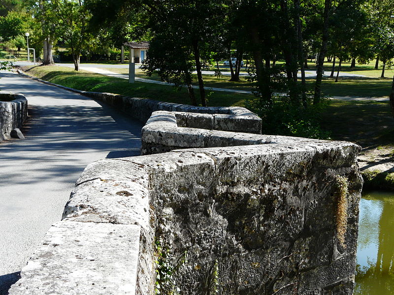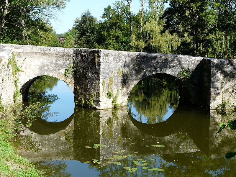 Le pont du Bretou, situé sur le Dropt en Bergeracois, franchit la rivière au nord‑est de la bastide d'Eymet en direction du village de Bretou. Implantée dans une boucle du Dropt, la bastide nécessitait un passage vers Bergerac, d'où la construction du pont. Aussi appelé pont romain, Vieux pont ou Pont neuf, il est en réalité de style et d'époque romane. Il a été bâti au XIIIe siècle, probablement sur l'emplacement d'un ancien gué ou d'un précédent ouvrage. Implanté sur l'axe d'une voie romaine desservant Marmande et Bergerac, il permettait au Moyen Âge de relier Eymet à Bergerac. L'ouvrage présente trois arches extradossées de style roman, dont la plus petite sert au délestage des eaux, celles‑ci étant détournées du courant principal par un îlot qui forme le troisième appui. Le pont affiche une légère courbure qui s'oppose au courant. L'amont est renforcé par deux avant‑becs, l'un triangulaire, l'autre rectangulaire, qui servent également de refuges pour les piétons. Il a été inscrit au titre des monuments historiques le 16 novembre 1995. On peut l'observer sous différents angles : côté amont et côté aval, ainsi que la chaussée et les deux avant‑becs.