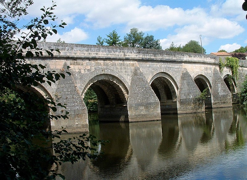Le pont du Vernay, dit aussi pont de Vernay, est situé à Airvault (Deux-Sèvres) et franchit le Thouet en amont du bourg. C'est un pont routier en arc composé de onze arches plein cintre, d'une longueur d'environ 120 mètres répartie en onze travées. Chaque travée présente en façade deux rouleaux extradossés, le rouleau supérieur étant en avancée par rapport à l'inférieur, et un rouleau intérieur saillant se trouve sous l'intrados, dans le prolongement du doubleau extérieur. La voûte de chaque travée a été construite selon la technique de l'arc-doubleau, avec trois arcs-doubleaux, méthode qui nécessite un cintre pour les arcs-doubleaux et un autre pour la voûte. Ce mode de construction, rare en France — l'autre exemple recensé se trouve à Thouars — est en revanche courant pour les ponts médiévaux en Angleterre. Les piles sont protégées en amont par des avant-becs triangulaires chaperonnés en glacis pyramidaux légèrement plus larges que les piles, et en aval par des arrière-becs rectangulaires talutés. Le nom de Vernay renvoie à un château voisin attesté en 1144, dont le seigneur fut à la tête d'une expédition de quatre chevaliers ayant assassiné Thomas Becket à la cathédrale de Canterbury. Après la canonisation de Thomas Becket, une chapelle expiatoire fut édifiée au château de Vernay et le pont mettait la ville d'Airvault en relation avec cette chapelle castrale. La tradition veut que le seigneur de Vernay et les chanoines de l'église Saint-Pierre d'Airvault aient fait construire le pont pour permettre aux chanoines d'aller en procession célébrer trois messes hebdomadaires dans la chapelle. Jean Mesqui a proposé de dater la construction avant 1242 en raison de caractéristiques rattachées au style Plantagenêt. Le pont a été restauré vers 1900 et est classé au titre des monuments historiques depuis 1868. Des études et notices lui sont consacrées dans la bibliographie, notamment des travaux de René Crozet, Francis Salet et Jean Mesqui, et des informations se trouvent dans les bases Mérimée et Structurae.