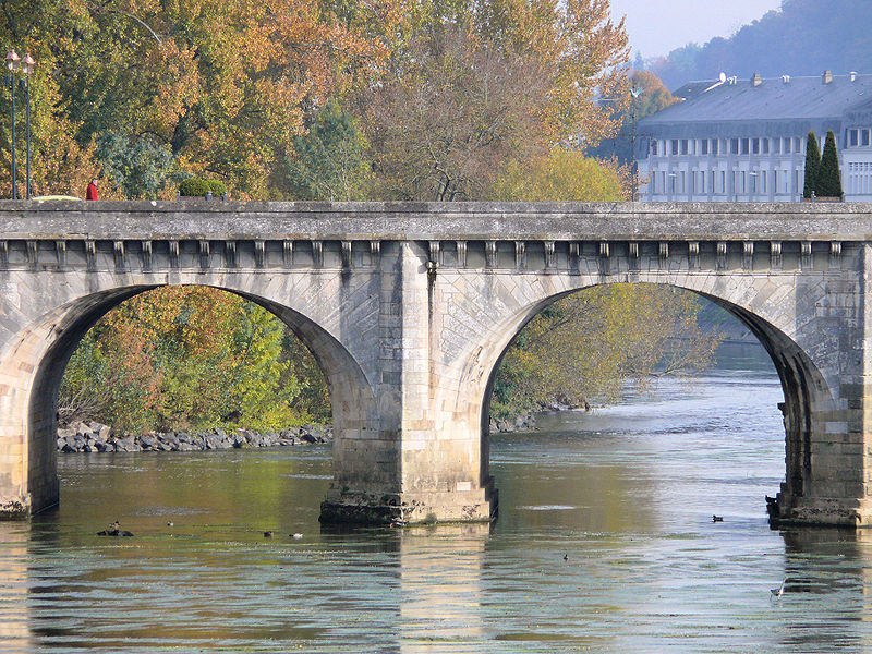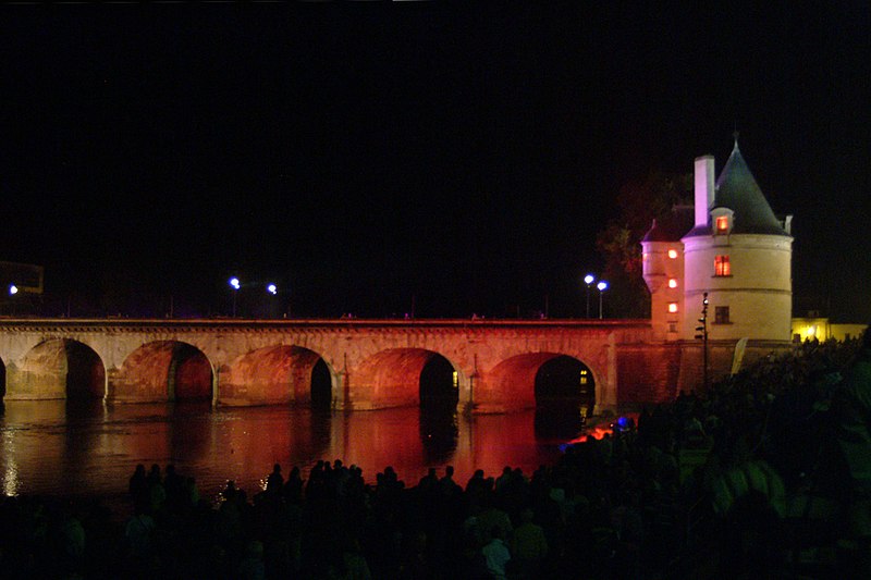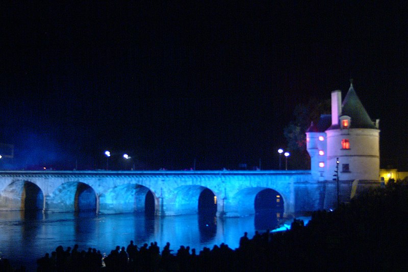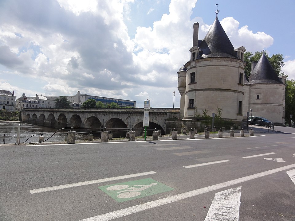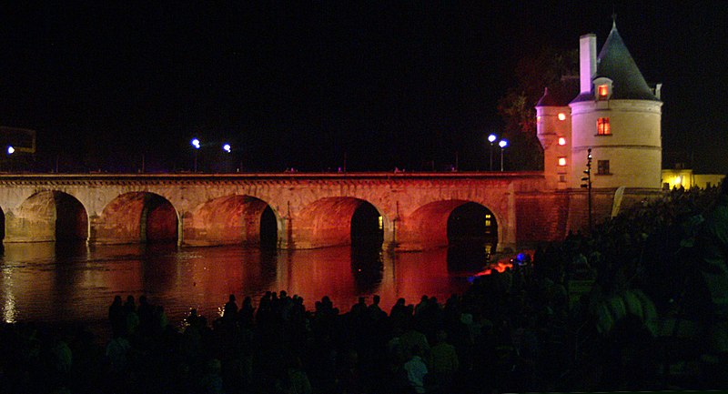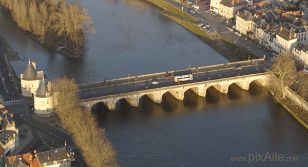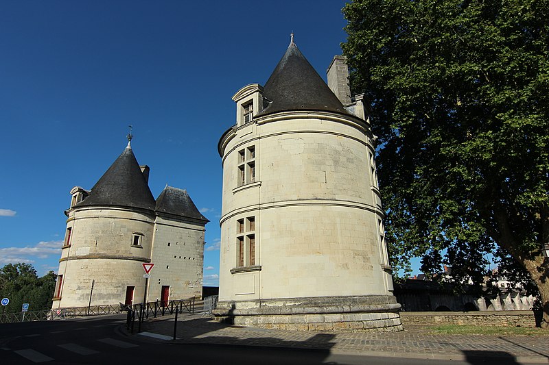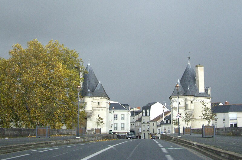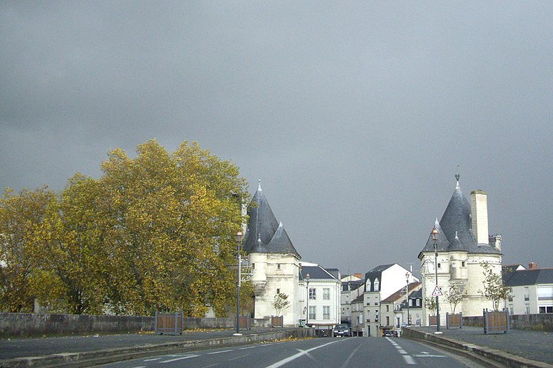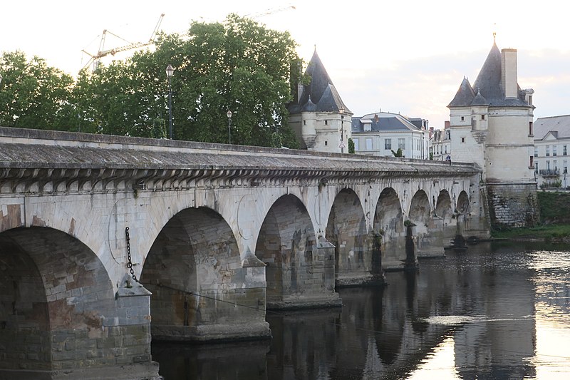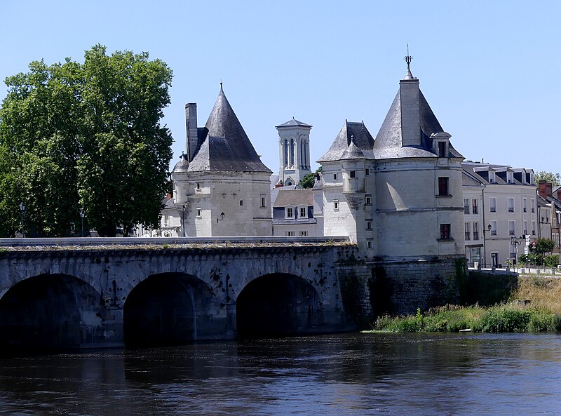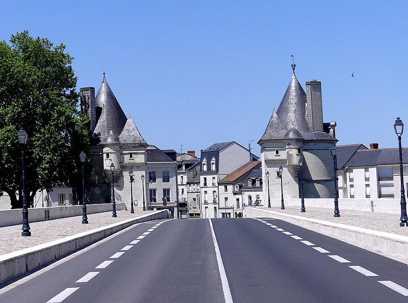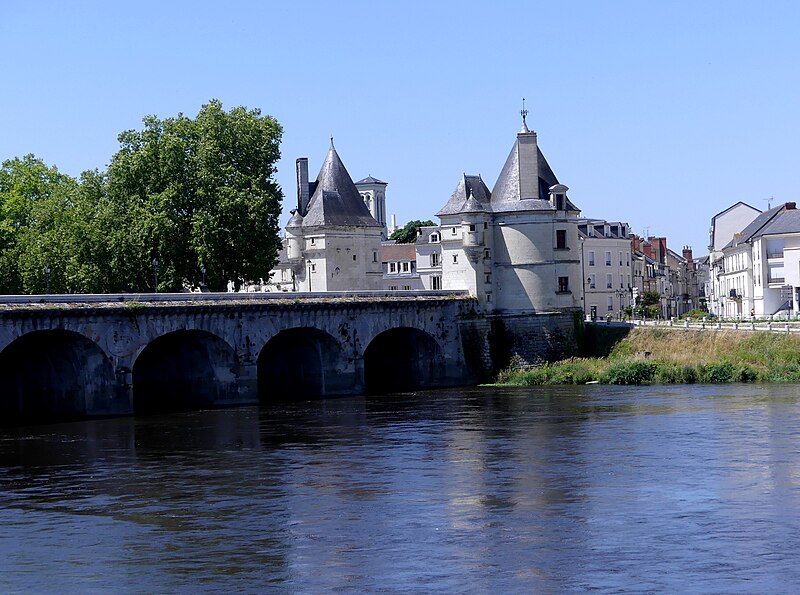 Le pont Henri-IV, en maçonnerie, a été construit entre 1565 et 1609 pour franchir la Vienne à Châtellerault ; il s’étend sur environ 144 mètres et sa plateforme droite, large de 21 mètres, est équipée de trottoirs surélevés. La ville s’était développée au confluent de la Vienne et du Clain autour d’un gué mentionné dès 952, et le franchissement a d’abord été assuré par un pont en bois élevé au début du XIe siècle. En 1058, une arche du pont fut donnée aux chanoines de la collégiale Saint-Nicolas de Poitiers pour y installer un moulin, et une construction en pierre est intervenue au XIIe siècle, liée à l’urbanisation de la rive gauche. Le pont fut progressivement fortifié et équipé de tours aux extrémités, notamment vers 1350, mais il sortit très endommagé de la guerre de Cent Ans et subit de nombreuses réparations par la suite. En 1482 la ville et son pont furent intégrées au domaine royal ; le passage constituait alors un axe important reliant plusieurs provinces et routes commerciales. Des inondations, notamment celle de 1556 qui emporta le pont en bois, conduisirent le roi Henri II à ordonner une reconstruction en pierre, projet interrompu par sa mort. À partir de 1564 les habitants demandèrent la reconstruction et le roi chargea deux maîtres-architectes, Laurent Joguet et Gaschon Belle, d’étudier l’emplacement et les matériaux ; des plans et devis furent dressés et l’exploitation de carrières locales fut décidée. Les travaux commencèrent en 1565 mais furent perturbés par les guerres de religion et par des difficultés financières répétées, entraînant alternance de réparations provisoires en bois et d’avancées sur l’ouvrage de pierre. Plusieurs maîtres d’œuvre et entrepreneurs se succédèrent : Robert Blondin fut nommé pour le chantier en 1575, Charles Androuet du Cerceau prit la direction en 1594 puis, après sa mort en 1606, son fils René Androuet du Cerceau acheva l’ouvrage. Des crédits royaux furent affectés à diverses reprises et des adjudications permirent d’achever les dernières arches et les travaux de pavage au début du XVIIe siècle ; les travaux furent réputés terminés en 1609. En 1611 René Androuet du Cerceau fit édifier un pavillon entre les deux tours sur la rive gauche. Menacé de destruction lors de la retraite allemande en 1944, le pont fut sauvé les 31 août et 1er septembre par l’action du commissaire de police et lieutenant FFI Charles Bichat et par les négociations du sous-préfet Pierre-Marcel Wiltzer. Le pont permet l’accès à la ville et présente des tours rondes encore en place côté Châteauneuf ; des tours carrées situées côté ville ont disparu. Ces tours n’ont pas eu de rôle défensif permanent mais ont pu servir ponctuellement au contrôle des entrées en période d’épidémie ou de troubles ; un petit pont de trois travées côté Châteauneuf, précédé d’un pont-levis, franchissait autrefois une dérivation de la Vienne. Les travées sont appuyées sur des piles épaisses flanquées d’avant-becs et d’arrière-becs triangulaires, et les voûtes, en anse de panier, présentent des profils décroissants vers les culées avec de larges ressauts en amont et en aval. À l’instar d’autres ponts neufs construits sous Henri IV, aucune maison n’a été bâtie sur le pont malgré sa largeur. L’ouvrage est classé au titre des monuments historiques depuis 1913.