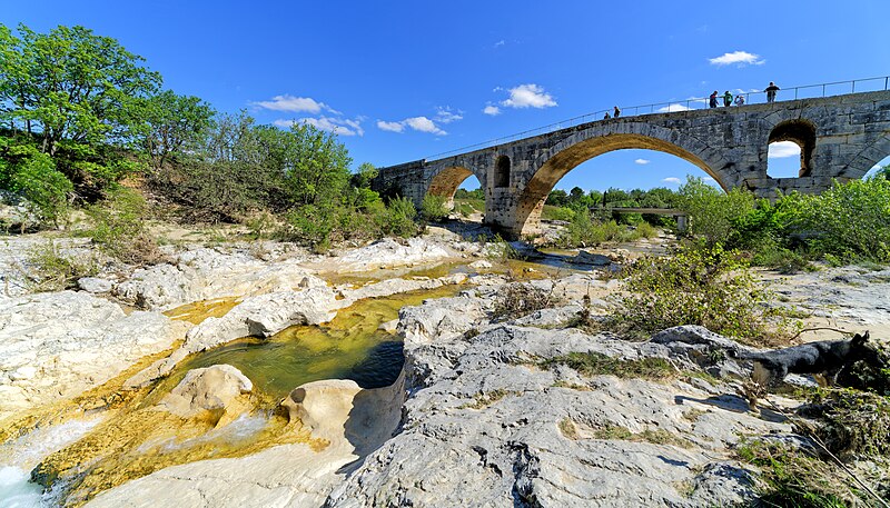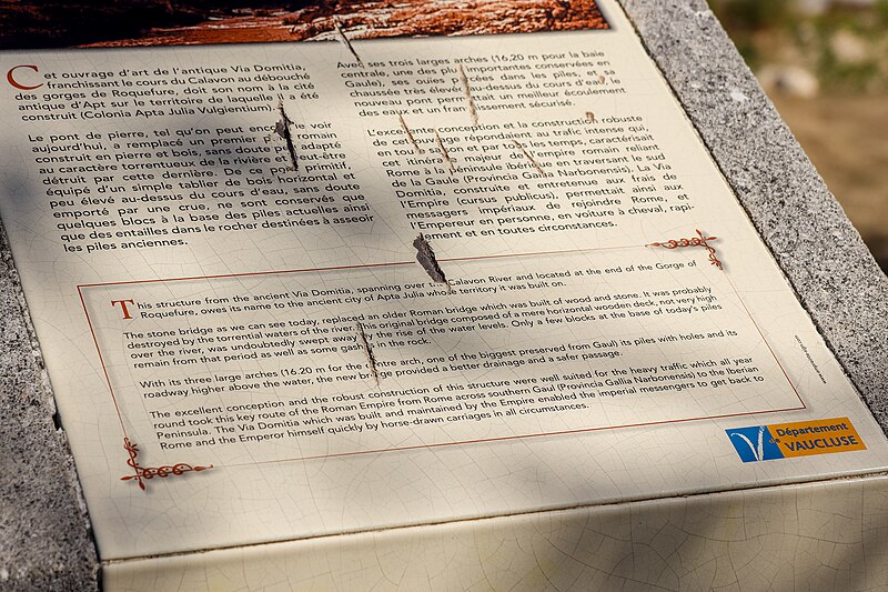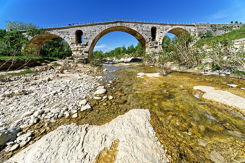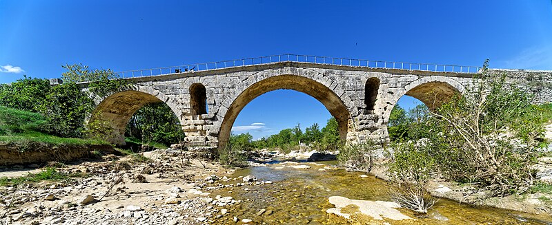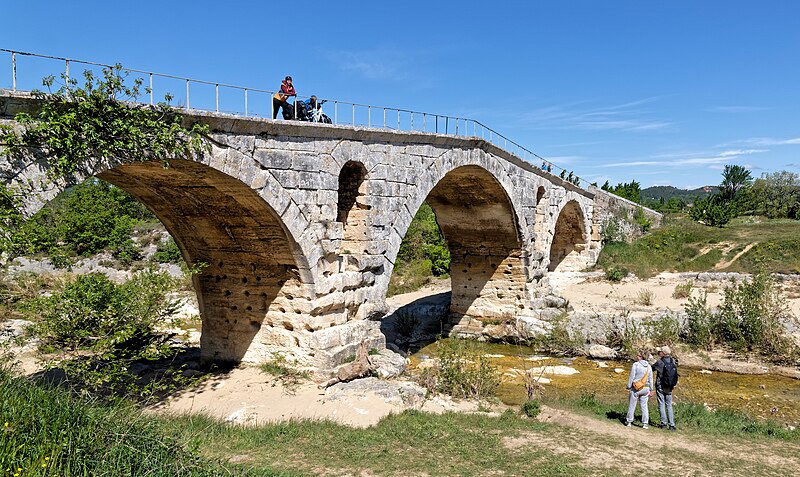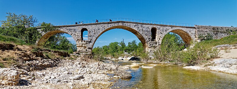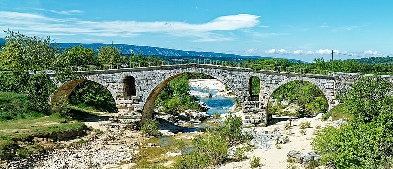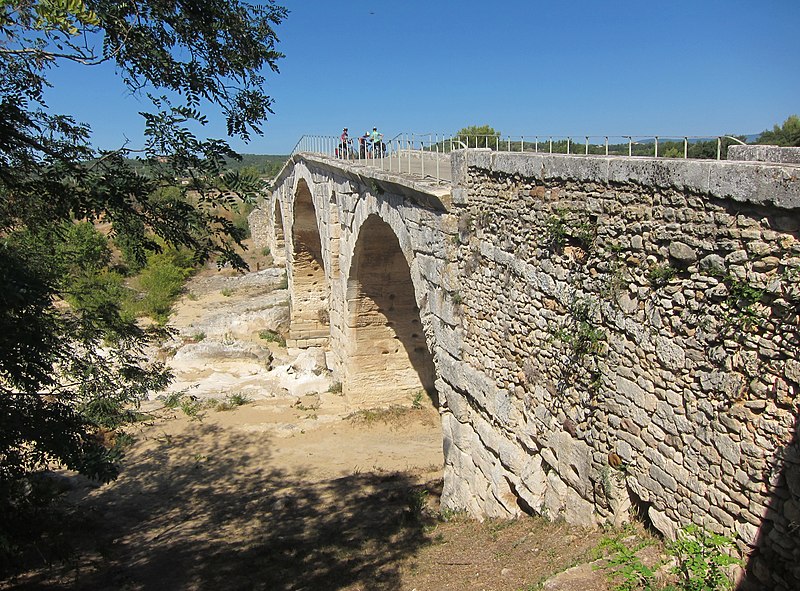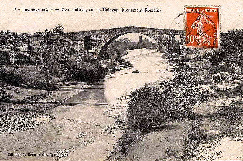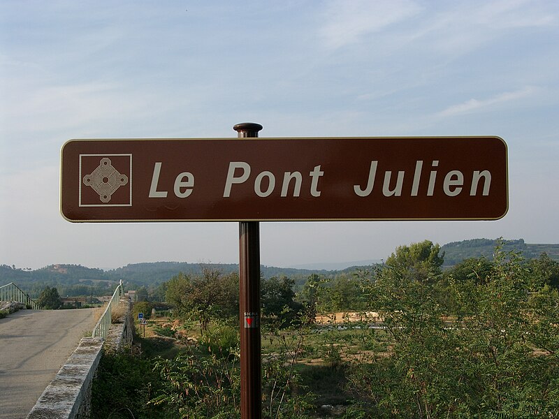 Le pont Julien est un pont romain traditionnellement daté de l'an 3 av. J.-C., situé au débouché du défilé de Roquefure, à 5 km au nord de Bonnieux et à 8 km à l'ouest d'Apt, dans le département de Vaucluse. Il se trouvait sur la voie Domitienne, qui reliait Narbonne (Colonia Narbo Martius) à Turin (Augusta Taurinorum), et doit son nom à la proximité d'Apt, alors Colonia Apta Julia. Classé monument historique, il a été intégré au réseau routier moderne (route départementale 108) jusqu'au printemps 2005, soit plus de 2 000 ans d'exploitation, avant la mise en service d'une déviation et d'un nouveau pont destinés à le préserver. La chaussée antique de la voie, visible en aval et en amont, franchissait le lit du Calavon selon un tracé en baïonnette. L'ouvrage mesure 80 mètres de long, 46 mètres de portée, 6 mètres de large (chaussée de 4,20 m) et 11,50 mètres de haut. Il se compose de trois arches en plein cintre, l'arche centrale étant plus élevée que les deux arches latérales. Les piles intermédiaires sont percées de grandes baies cintrées, dites dégueuloirs, pour faciliter l'évacuation des eaux en période de crue, et sont munies en amont d'avant-becs semi-circulaires. Bâti en grand appareil de calcaire provenant des carrières du Luberon, le pont remplace un ouvrage plus ancien dont on perçoit les traces autour des piles. En aval, le tracé de la route antique est encore bien visible sur six kilomètres, et en amont s'ouvrent les gorges de Roquefure. Depuis 2005, le pont est emprunté par la véloroute du Calavon, projet cofinancé par l'Union européenne via le Fonds européen de développement régional (FEDER), la région Provence-Alpes-Côte d'Azur et le Conseil départemental de Vaucluse ; cette voie, entièrement balisée et sécurisée, devrait à terme traverser toute la vallée du Calavon depuis Cavaillon jusqu'à Volx dans les Alpes-de-Haute-Provence. Le pont se situe à 5 km du village de Bonnieux ; depuis cet emplacement, une direction mène à l'est vers Apt (10 km) et Saint-Martin-de-Castillon, l'autre à l'ouest vers Beaumettes (10 km) et Cavaillon, dont un tronçon est en cours de réalisation. Des vues depuis l'est permettent d'observer la pile, les dégueuloirs et, en arrière-plan, le massif du Luberon.