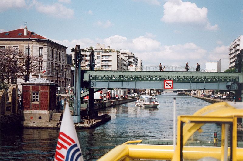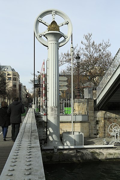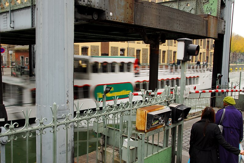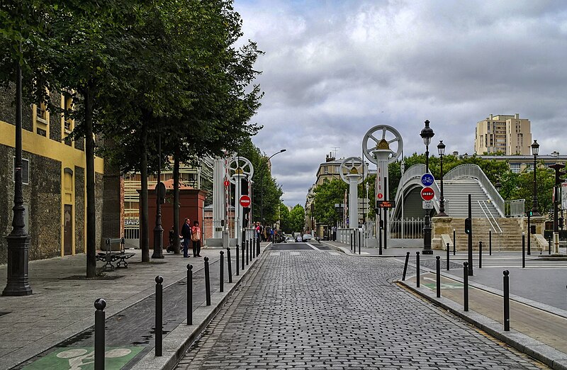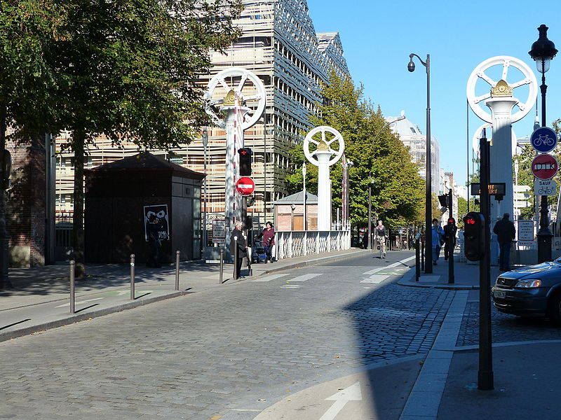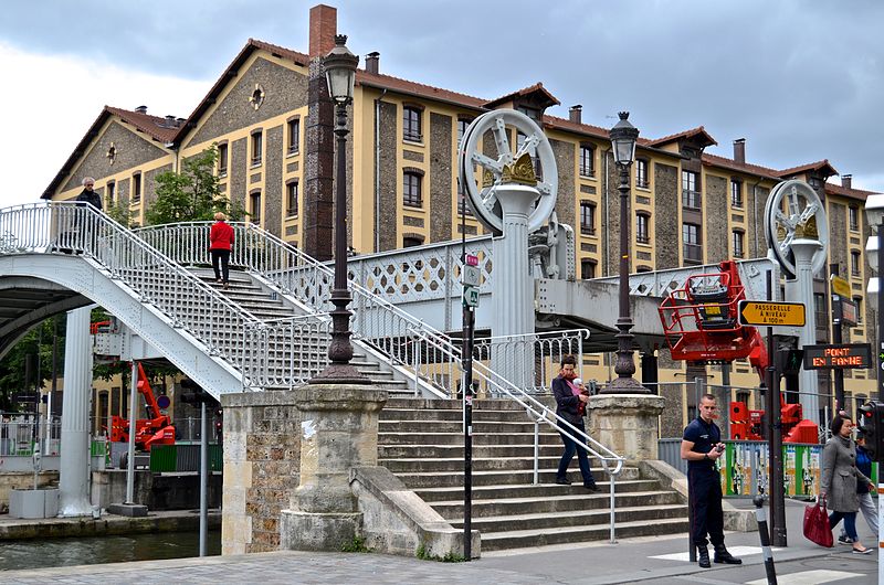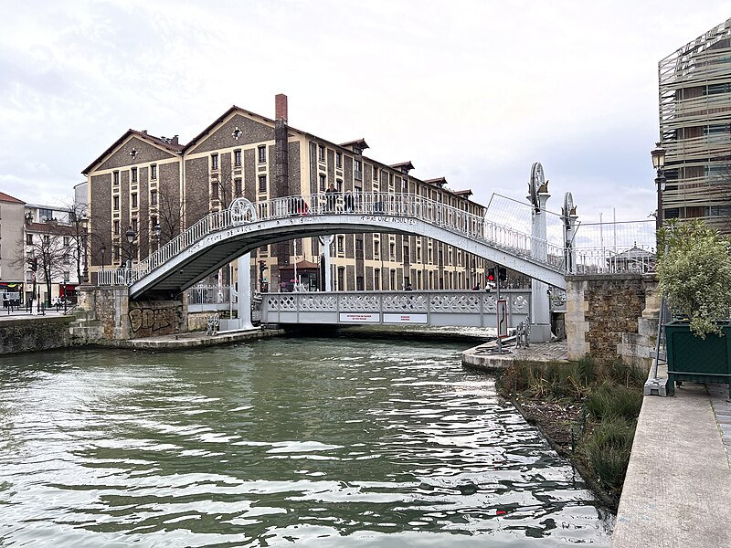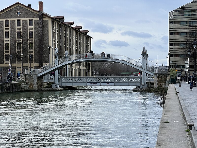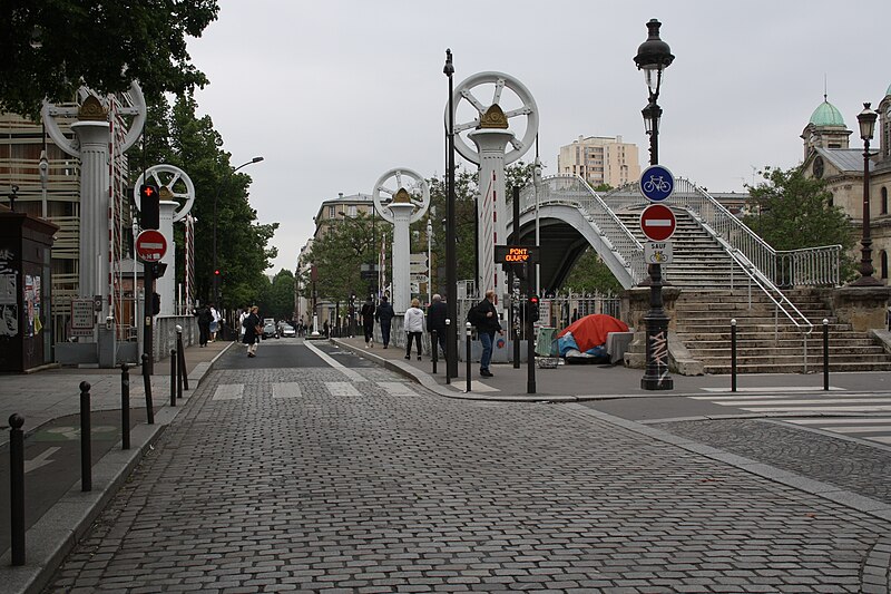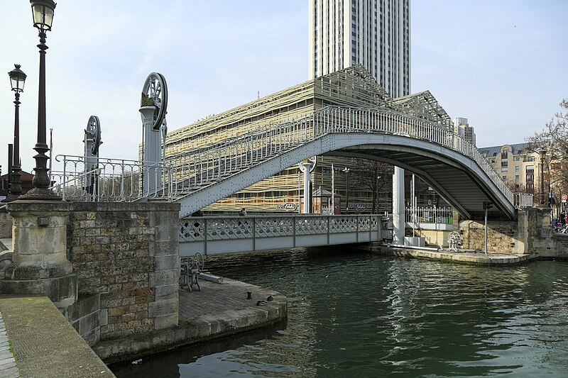 Le pont levant de la rue de Crimée se situe à l'intersection du bassin de la Villette et du canal de l'Ourcq, dans le 19e arrondissement de Paris, et relie le quai de l'Oise au quai de la Marne en prolongeant la rue de Crimée. Mis en service en 1885, il est aujourd'hui le dernier pont levant de Paris et effectue encore près de 9 000 manœuvres par an. Une passerelle piétonne fixe et surélevée, accolée au pont, permet aux piétons de traverser lorsque le tablier est relevé. Le site est desservi par les stations de métro Crimée, Riquet, Ourcq et Laumière. Un premier pont tournant, construit en 1874 pour remplacer un ouvrage en bois incendié en 1871, occupait auparavant cet emplacement. Ce pont tournant, long de 17,80 m et large de 7,60 m, disposait d'une seule volée et d'une passe pour bateaux de 7,94 m ; sa manœuvre était assurée par une machinerie hydraulique alimentée par le réservoir de Ménilmontant, avec possibilité d'actionnement manuel en cas de panne. La décision de remplacer ce pont par un pont levant s'inscrit dans un programme de rehaussement du tirant d'eau et d'amélioration de la navigation entre les bassins du port de la Villette, engagé après le rachat des canaux par la ville et l'augmentation de la profondeur à 3,20 m. Après étude des différentes solutions, le choix se porta sur un pont levant conçu sous la direction de l'ingénieur en chef Edmond Humblot, avec l'ingénieur Louis Le Chatelier et l'assistance du conducteur Briolet. Le constructeur Fives-Lille répondit seul à l'appel d'offres et proposa un ouvrage équilibré par quatre contrepoids d'angle évoluant dans des puits étanches sous le plan d'eau ; la partie apparente du mécanisme fut réduite aux chaînes, poulies d'équilibre et supports décoratifs en fonte. Fives-Lille déposa un brevet sur ce procédé le 14 décembre 1883 et sa proposition fut acceptée par le conseil municipal le 31 mars 1884. Le chantier a dû traiter des contraintes particulières, notamment l'abaissement d'un important collecteur situé sous la rue de Crimée pour tenir compte de la nouvelle profondeur du bassin, sans interrompre les services qu'il contenait. À l'époque de sa construction, l'ouvrage était le troisième pont levant construit en France. Le pont levant et la passerelle attenante ont été inscrits au titre des monuments historiques par un arrêté du 12 février 1993. L'ensemble a été entièrement rénové en 2010-2011 : la centrale hydraulique a été modernisée pour réduire la consommation d'eau potable (2 m3 par manœuvre auparavant), et la télégestion a été installée depuis le poste de commande de la première écluse du canal Saint-Denis ; le coût de l'opération a été estimé à 3,8 millions d'euros. On peut encore observer les éléments constitutifs du site, notamment la passerelle piétonne, le système de levage et le bâtiment annexe portant une plaque mentionnant la date de construction et le blason de Paris. À proximité se trouvent la place de l'Édit-de-Nantes, le centre de secours Bitche de la brigade de sapeurs-pompiers de Paris, le square Serge-Reggiani avec son kiosque à musique, l'église Saint-Jacques-Saint-Christophe de la Villette et le marché de Joinville.