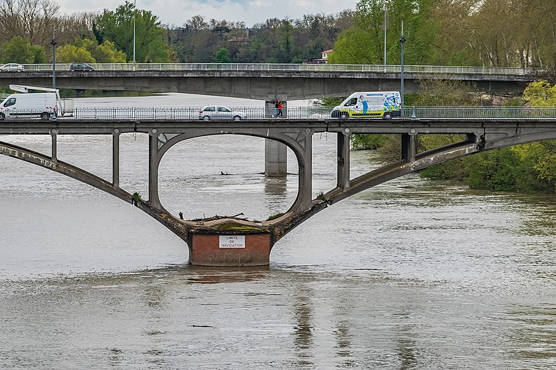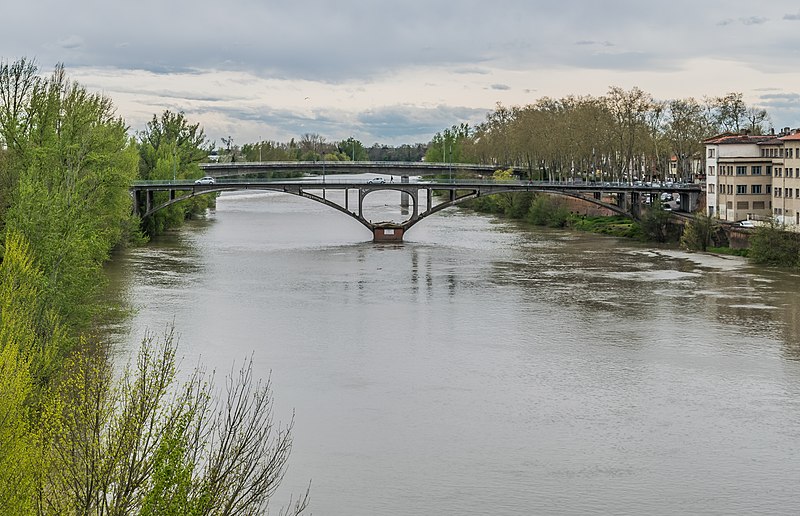 Le pont Neuf, qui franchit le Tarn à Montauban, est un ouvrage en béton armé ouvert à la circulation en 1913. Sa structure repose sur le principe novateur d'articulation de l'arc en trois points mis au point par Simon Boussiron, chargé du chantier. Le pont principal comporte deux arches de 53 et 56 mètres d'ouverture, des voûtes de faible épaisseur et de nombreux évidements, dispositions qui permettent de limiter l'obstacle aux crues du Tarn. Un bow-string, procédé plus courant à l'époque, enjambe le canal de Lissac. En avril 1907, le conseil général décida d'établir à Villebourbon la gare centrale du réseau de tramways départementaux et de raccorder la ligne de Montauban à Monclar par un pont en ciment armé à construire en face de la rue des Écoles, sous réserve d'une entente entre la ville et le département pour la participation financière. Un accord entre la municipalité et le département fut signé le 17 août 1907 et approuvé par le conseil général le 13 octobre, mais les archives témoignent d'une longue querelle ultérieure sur les contributions. Dans son rapport du 24 décembre 1908, l'ingénieur en chef des ponts et chaussées soutint que la réalisation d'un pont à Sapiac, avec des rampes accessibles aux tramways, améliorerait considérablement l'accès à la ville ; l'avant-projet dressé par la maison Hennebique fut estimé à 536 000 francs, la part de la vicinalité à 7/11e soit 341 091 francs et la subvention demandée à l'État à 89 879 francs. Le ministre de l'Intérieur accorda la subvention le 20 avril 1909, à laquelle s'ajouta une subvention exceptionnelle de 30 000 francs sollicitée par le conseil général. Le devis et le cahier des charges furent approuvés le 4 mai 1910 et un concours entre spécialistes du béton armé fut lancé ; le jury fut nommé le 10 juin 1910 et choisit le projet de Simon Boussiron le 19 novembre 1910. Le conseil général autorisa le 26 avril 1911 l'approbation du projet, évaluant les travaux d'entreprise à 518 000 francs tout en fixant la dépense maximale à 500 000 francs afin de financer la décoration, et le préfet confia définitivement le marché à Boussiron le 5 août 1911. Le projet initial prévoyait trois arches parallèles, mais, l'île de Sapiac étant très élevée, il fut jugé inutile de construire une troisième voûte ; on retint donc la solution de deux arches sur le Tarn et d'un bow-string sur le canal, ce qui réduisit aussi l'importance des fondations profondes. Le jury valida l'emploi d'un ciment à haute résistance dans les arches, permettant d'amincir les voûtes et d'alléger l'ouvrage. Le 26 mars 1912, le conseil municipal adopta l'éclairage électrique du pont au moyen de 18 poteaux métalliques intégrés au garde-corps ; le devis du 9 avril prévoyait en outre la substitution de garde-corps en fer forgé, des motifs aux articulations et aux extrémités, des moulures des arcs, des tympans et du bow-string, ainsi que des panneaux en brique pour la moulure supérieure des murs de soutènement. Le pont fut achevé en 1913, soumis aux épreuves de résistance consignées le 24 juin 1913, puis ouvert à la circulation le 29 juin 1913. La ligne de tramways, retardée par la guerre, ne fut mise en service qu'en janvier 1926 ; dès 1931 on envisagea de la remplacer par des autobus et la circulation des tramways cessa définitivement le 31 décembre 1933. Le pont Neuf a été inscrit au titre des monuments historiques le 29 avril 2005 et a fait l'objet de réparations, notamment le remplacement de son système d'éclairage.