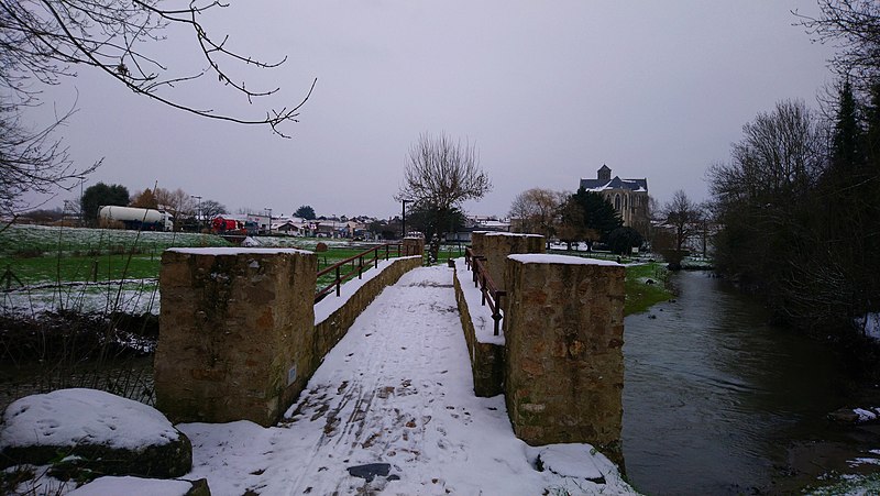 Le pont dit « Pont Romain » de Mouzillon, en Loire-Atlantique, franchit la Sanguèze, affluent de la Sèvre nantaise, au sud du bourg. L'ouvrage est inscrit au titre des monuments historiques en 1925. En décembre 2014, une pile et une arche ont partiellement cédé à la suite du creusement du lit provoqué par le tourbillonnement de l'eau créé par la chaussée, et des travaux de restauration ont été entrepris. Pour ces travaux, une tranchée a été aménagée dans la chaussée afin de dévier temporairement la Sanguèze. Des vues photographiques montrent le pont depuis l'aval (ouest) et l'amont (est), côté chaussée. Des ressources et illustrations sont consultables sur Wikimedia Commons ainsi que dans les bases Mérimée et le Digital Atlas of the Roman Empire ; on peut également se référer aux listes de ponts et de monuments historiques de la Loire-Atlantique.