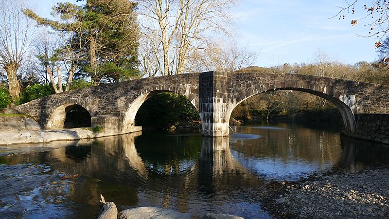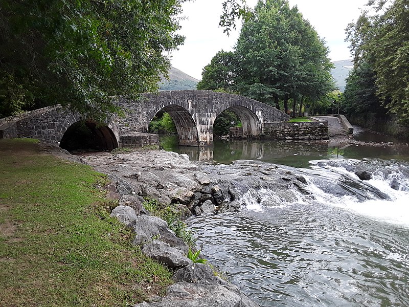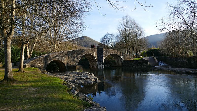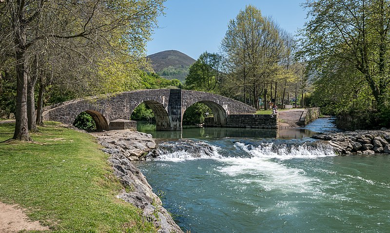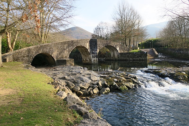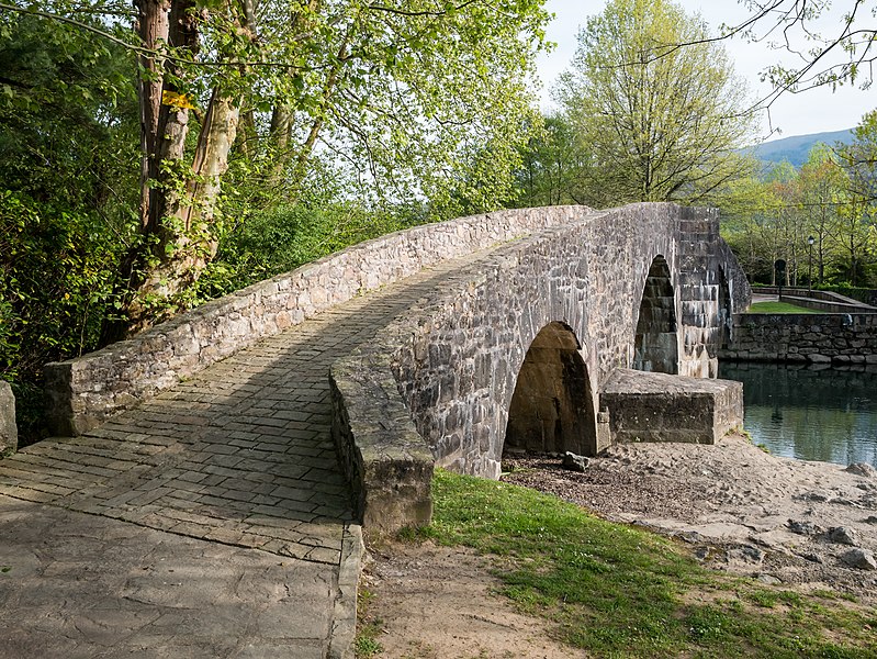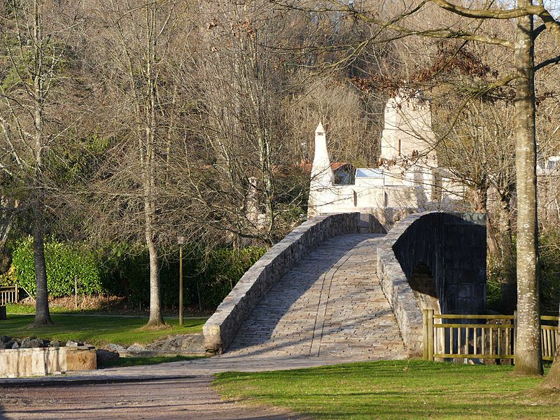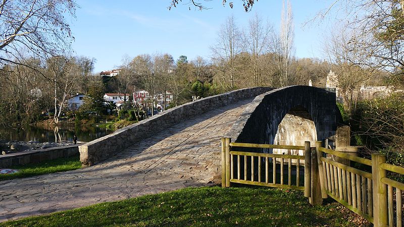 Le pont dit « Pont romain » franchit la Nivelle à Ascain, dans les Pyrénées-Atlantiques, et est orienté nord-sud. Il mesure environ quarante mètres et est précédé et suivi d'une voie pavée dite « voie romaine ». L'ouvrage est composé de trois arches en plein cintre d'ouvertures et de hauteurs inégales, appareillées en pierre. La pile centrale, la plus massive (environ 5 m de haut), porte des éperons en amont et en aval ; l'éperon amont est plus saillant pour mieux résister au courant. À la base de cette pile se trouve, en saillie sur la pierre, une tête d'homme sculptée qui fut longtemps submergée. Des longerons de bois pouvaient être encastrés entre les piles et les arches afin de bloquer la circulation fluviale. Les accès au pont sont en entonnoir, le tablier étant plus étroit que la voie d'approche, et présentent au niveau de la pile maîtresse deux refuges pour les piétons. Le pont pouvait également faire office de barrage et semble s'inscrire dans un ensemble comprenant un moulin et son canal d'alimentation. Les marées se font sentir jusqu'au niveau du pont, sans atteindre l'amont. Sa datation est discutée : il est réputé construit vers 450, mais une édification aux XVIe ou XVIIe siècles a été évoquée, l'appellation « romain » étant parfois attribuée à des ouvrages plus récents prolongeant une voie antique. L'ouvrage a joué un rôle lors de la retraite du général Soult et pendant la bataille de la Nivelle ; la première arche fut rompue le 10 novembre 1813 pour empêcher le passage de l'artillerie de Wellington. Le pont a été inscrit au titre des monuments historiques par arrêté du 19 mai 1925. Fragilisée par des inondations, la pile centrale, déjà affectée par la crue du 26 août 1983, s'est effondrée lors de la crue de décembre 1994 et a été reconstruite par la suite.