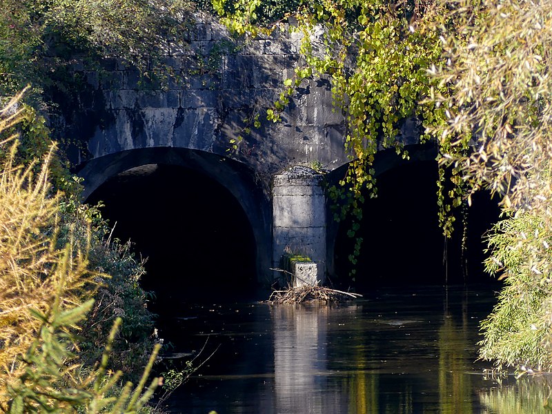 Les travaux furent confiés à l'ingénieur en chef Joseph Mosca, qui présenta un premier devis en février 1844. Une seule voûte avait d'abord été envisagée, mais l'instabilité de la moraine a conduit à privilégier un tunnel à deux voûtes. Les entrepreneurs Insermini et Marocco, chargés des travaux, furent écartés en 1846 en raison de difficultés et de retards, puis les travaux furent suspendus durant quatre ans avant que Mosca n'établisse un nouveau devis le 4 avril 1850 et que le chantier ne reprenne. Bien qu'achevés initialement en 1852, la décision d'introduire immédiatement le Gelon dans le tunnel n'intervint que le 11 février 1854.