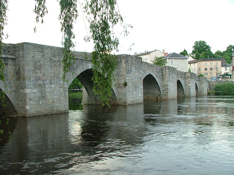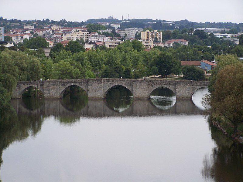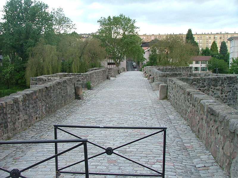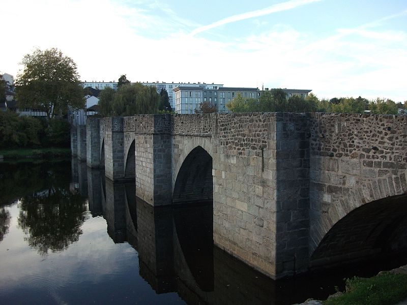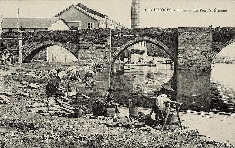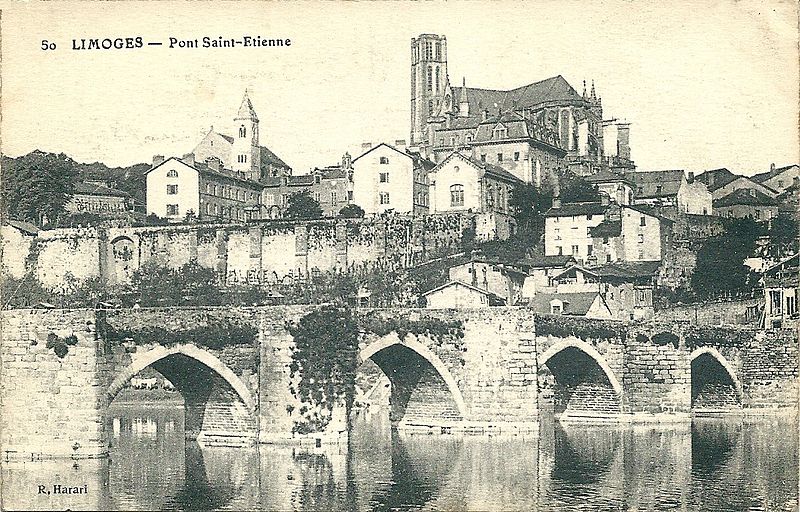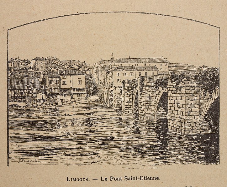 Le pont Saint-Étienne se situe au pied de la cathédrale, dans l'ancienne Cité de Limoges (Haute-Vienne). Il mesure environ 120 m de longueur et a été construit au XIIIe siècle ; il est l'un des deux ponts médiévaux franchissant la Vienne à Limoges, avec le pont Saint‑Martial situé un kilomètre en aval. Selon une description, il est formé de huit arches en ogives et chaque pile est surmontée de refuges en bec côté amont et carrés côté aval. Une autre description précise qu'il est supporté par sept arches inégales en arcs brisés, de longueurs successives de 10,20 m, 10,60 m, 11,30 m, 12,40 m, 12,50 m, 11,40 m et 10,10 m. Sa largeur est d'environ 5 m, ou 11 m si l'on mesure entre l'avant-bec et le contrefort. Achevé en 1203 au pied de la muraille de la Cité, le pont participait au système défensif et était défendu par deux tours munies de pont-levis, une à chaque extrémité. Une inscription rappelant des travaux de 1619 se trouve enfouie sous le quai Louis Goujaud, près de la dernière arche. Réparé en 1854, il a failli être démoli en 1903 pour laisser place à un nouvel ouvrage, mais les projets furent modifiés après une vive réaction de l'opinion publique et le pont conserva sa place. Pendant la période industrielle, la Vienne servit au flottage des bois provenant de la forêt limousine ; le pont Saint-Étienne marquait la limite de ce flottage, les bois étant arrêtés en amont par des « ramiers » construits vers 1760 et détruits en 1897. Le bois était ensuite stocké sur la berge, dans l'espace du port au bois appelé port du Naveix. Le flottage s'intensifia au XIXe siècle pour alimenter les nombreux fours à porcelaine de Limoges ; le plus ancien, le four des Casseaux, subsiste près du port du Naveix et le « four à globe », classé monument historique, se visite dans l'usine de porcelaine Royal Limoges. Sur la rive droite, le pont était bordé des maisons des laveuses, qui assuraient la lessive d'abord pour le Château puis pour la bourgeoisie ; cette pratique cessa vers le milieu du XXe siècle. Classé monument historique en 1907, le pont Saint-Étienne est désormais réservé aux piétons et sert encore de passage aux pèlerins de la voie de Vézelay de Saint-Jacques‑de‑Compostelle. Ce pont médiéval du XIIIe siècle est considéré comme l'un des mieux conservés de France ; il combine un avant-bec pour casser le courant côté amont et un contrefort côté aval pour réduire les remous. Un timbre postal représentant le pont Saint-Étienne et la cathédrale de Limoges, d'une valeur de 12 francs, a été émis le 26 mars 1955.