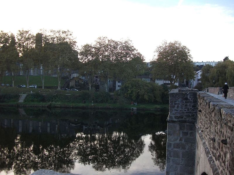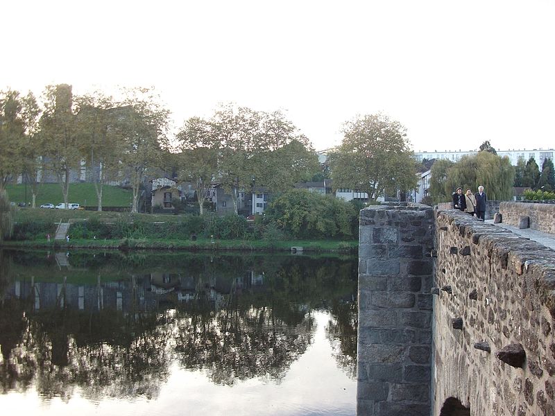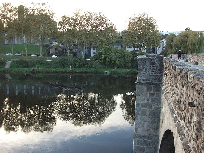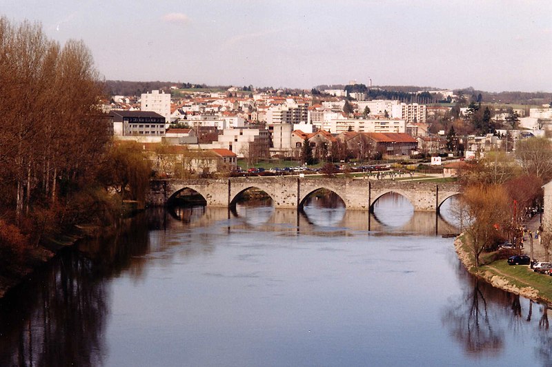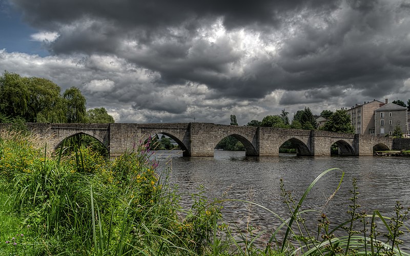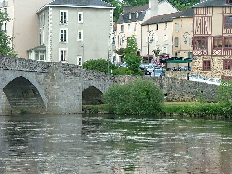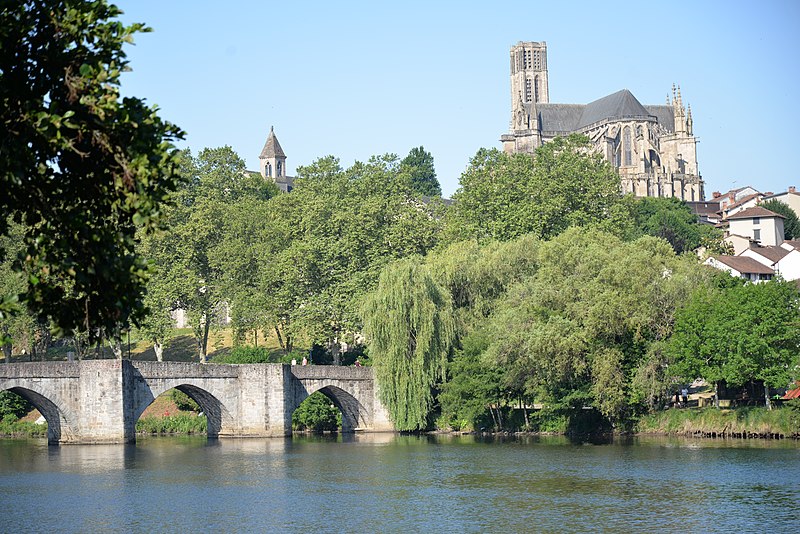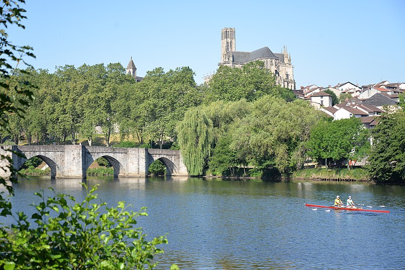 Le pont Saint-Étienne se situe au pied de la cathédrale, dans l'ancienne Cité de Limoges (Haute-Vienne). Il mesure environ 120 m de longueur et a été construit au XIIIe siècle ; il est l'un des deux ponts médiévaux franchissant la Vienne à Limoges, avec le pont Saint‑Martial situé un kilomètre en aval. Selon une description, il est formé de huit arches en ogives et chaque pile est surmontée de refuges en bec côté amont et carrés côté aval. Une autre description précise qu'il est supporté par sept arches inégales en arcs brisés, de longueurs successives de 10,20 m, 10,60 m, 11,30 m, 12,40 m, 12,50 m, 11,40 m et 10,10 m. Sa largeur est d'environ 5 m, ou 11 m si l'on mesure entre l'avant-bec et le contrefort. Achevé en 1203 au pied de la muraille de la Cité, le pont participait au système défensif et était défendu par deux tours munies de pont-levis, une à chaque extrémité. Une inscription rappelant des travaux de 1619 se trouve enfouie sous le quai Louis Goujaud, près de la dernière arche. Réparé en 1854, il a failli être démoli en 1903 pour laisser place à un nouvel ouvrage, mais les projets furent modifiés après une vive réaction de l'opinion publique et le pont conserva sa place. Pendant la période industrielle, la Vienne servit au flottage des bois provenant de la forêt limousine ; le pont Saint-Étienne marquait la limite de ce flottage, les bois étant arrêtés en amont par des « ramiers » construits vers 1760 et détruits en 1897. Le bois était ensuite stocké sur la berge, dans l'espace du port au bois appelé port du Naveix. Le flottage s'intensifia au XIXe siècle pour alimenter les nombreux fours à porcelaine de Limoges ; le plus ancien, le four des Casseaux, subsiste près du port du Naveix et le « four à globe », classé monument historique, se visite dans l'usine de porcelaine Royal Limoges. Sur la rive droite, le pont était bordé des maisons des laveuses, qui assuraient la lessive d'abord pour le Château puis pour la bourgeoisie ; cette pratique cessa vers le milieu du XXe siècle. Classé monument historique en 1907, le pont Saint-Étienne est désormais réservé aux piétons et sert encore de passage aux pèlerins de la voie de Vézelay de Saint-Jacques‑de‑Compostelle. Ce pont médiéval du XIIIe siècle est considéré comme l'un des mieux conservés de France ; il combine un avant-bec pour casser le courant côté amont et un contrefort côté aval pour réduire les remous. Un timbre postal représentant le pont Saint-Étienne et la cathédrale de Limoges, d'une valeur de 12 francs, a été émis le 26 mars 1955.