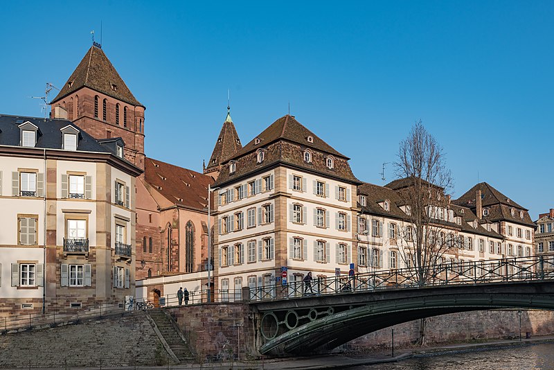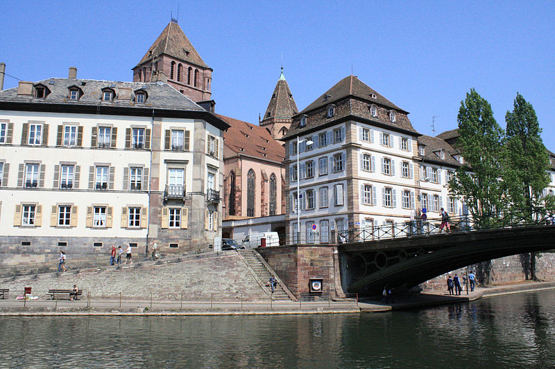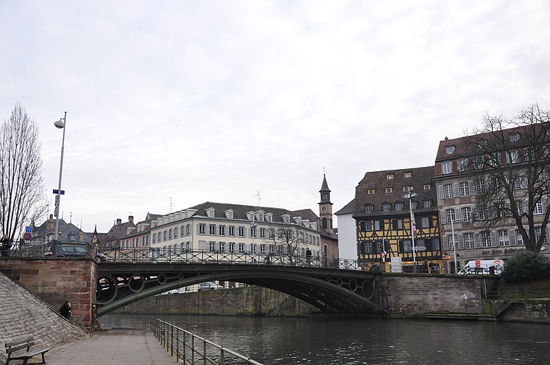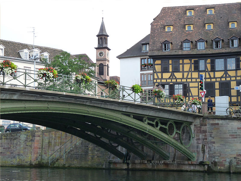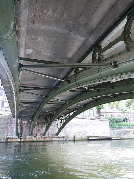 Le pont Saint-Thomas (Thomasbruck en alsacien) est un pont métallique en fonte, encore utilisé, qui enjambe l'Ill dans le quartier du Finkwiller à Strasbourg. Construit en 1841 par les frères de Dietrich de Reichshoffen sous la direction de Nicolas Cadiat, il a été réalisé d'après les plans de l'ingénieur Antoine-Rémy Polonceau, auteur du système Polonceau breveté en 1835 ; la première application de ce système fut le pont du Carrousel à Paris, démoli en 1935. Il figure parmi les plus anciens ponts métalliques antérieurs à 1850 conservés en France. Le pont s'inscrit dans l'axe de la rue Martin-Luther, qui y conduit depuis la place Saint-Thomas, et relie sur l'autre rive le quai Finkwiller et le quai Charles-Frey. L'existence d'un ouvrage à cet emplacement est attestée dès 1197. Après la Révolution il porta le nom de « pont de la République » en 1794, puis reprit l'appellation « pont Saint-Thomas » en 1813 ; il retrouva son nom allemand pendant les deux guerres et son nom français en 1918 puis en 1945. L'édifice, reconstruit dans sa forme actuelle en 1841, a été classé au titre des monuments historiques en 1995. Architectoniquement, il comporte une seule arche, ce qui a permis de supprimer les piles et de réduire ainsi le lit de la rivière à cet endroit. L'arc repose sur quatre arcs en fonte creux qui prennent appui sur deux culées en maçonnerie, très épaisses et fondées sur du béton ; ces arcs sont reliés au tablier par des anneaux de diamètre décroissant. Les arcs sont constitués de portions de demi-cylindres de section ovale, boulonnées entre elles de manière que les joints de deux demi-cylindres se trouvent toujours au milieu du demi-cylindre opposé.