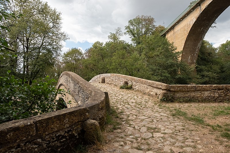 Le vieux pont, dit pont de Ternos, enjambe la Cure au bas du village de Pierre-Perthuis, dans l'Yonne. Il occupe le point le plus resserré de la rivière et présente une voûte en dos d'âne. Le pont a conservé ses pavés et ses chasse-roues. La date de sa construction reste incertaine : selon Marin et Piquard-Péguet elle serait de 1770, mais l'ouvrage pourrait être plus ancien et a parfois été attribué à Vauban. L'édifice est classé au titre des monuments historiques en 1921 et a été restauré en 1925. Il a servi de décor à une scène du film La Grande Vadrouille de Gérard Oury en 1966. Pour aller plus loin, on peut consulter la liste des monuments historiques de l'Yonne ainsi que les portails consacrés aux ponts, aux monuments historiques français et à l'Yonne.