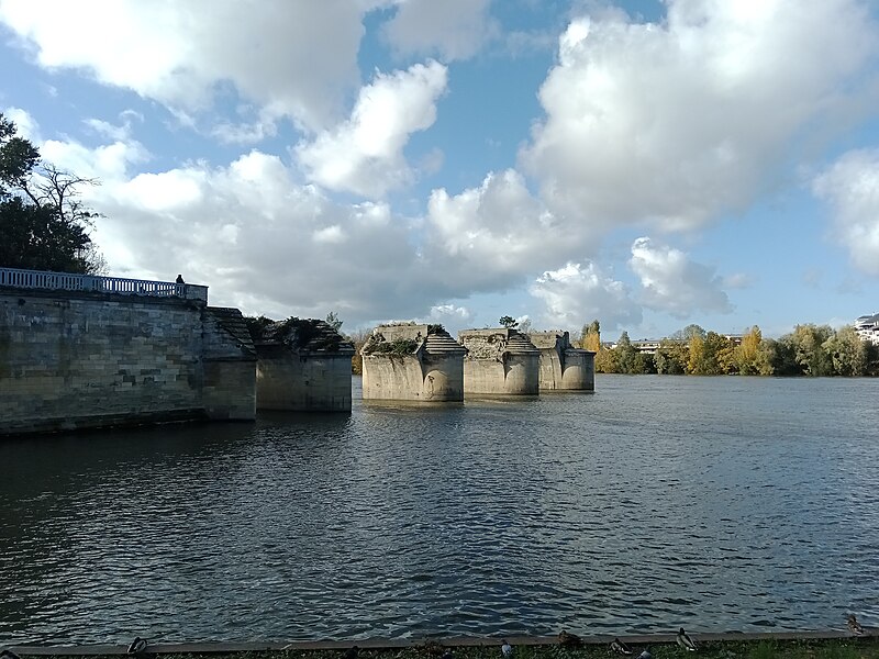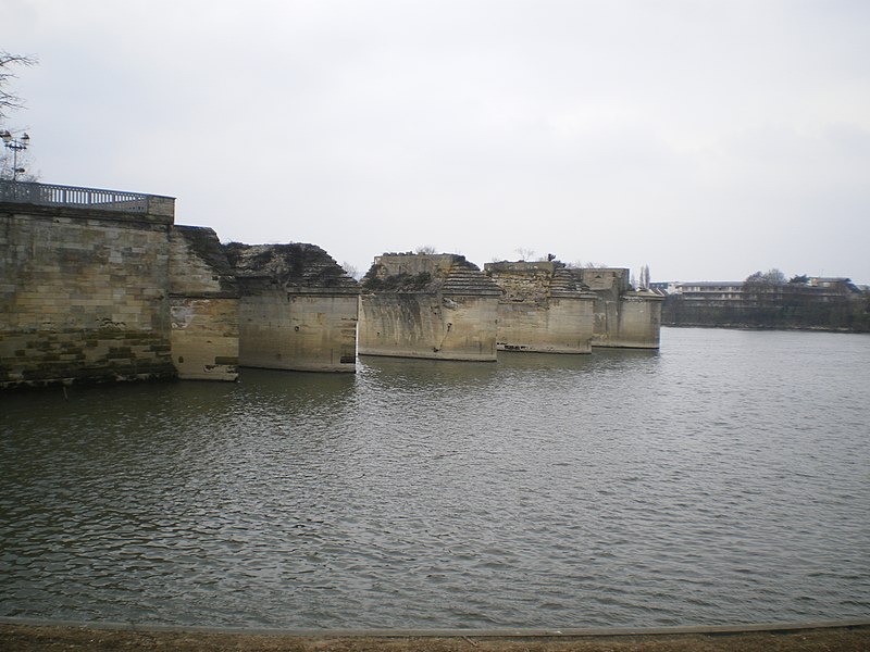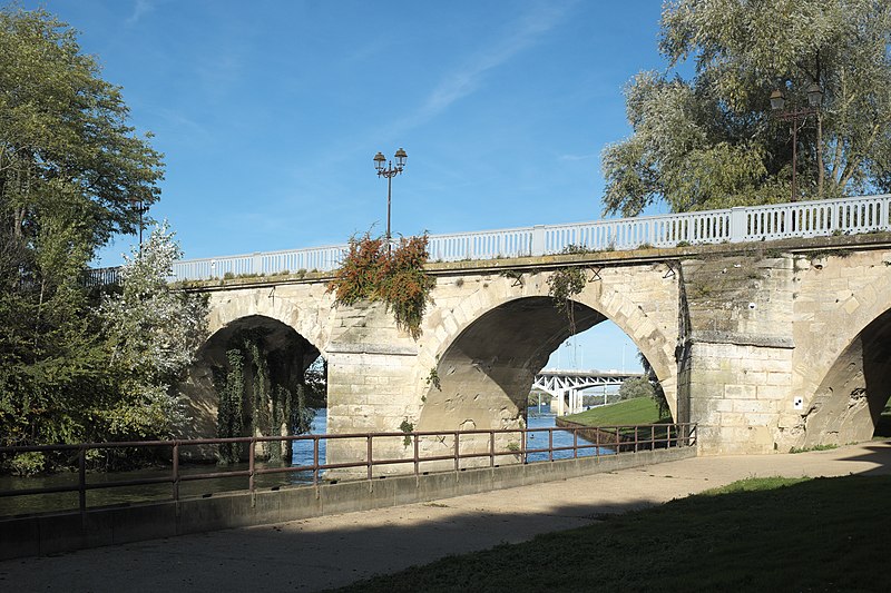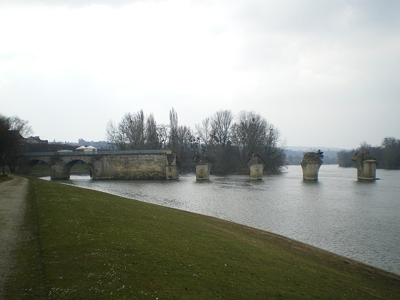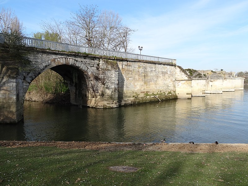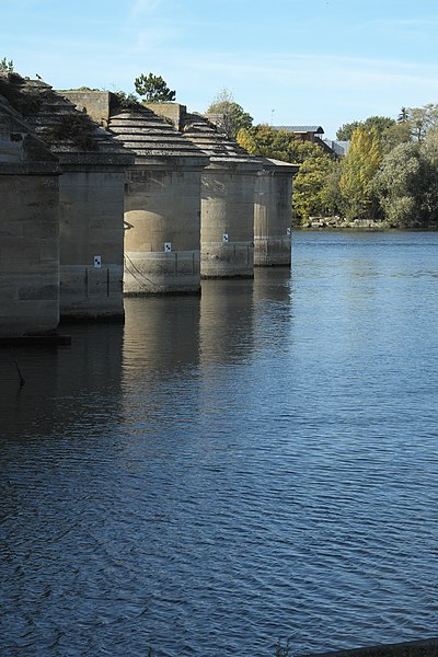 À la suite d'usures et d'événements guerriers, l'ouvrage a connu de multiples réparations et reconstructions : des réfections et surélévations furent réalisées au XIXe siècle, puis la suppression de quelques arches au milieu du siècle permit la réalisation d'une arche marinière de grande portée afin d'améliorer la navigation, entraînant cependant la perte de la force hydraulique nécessaire au fonctionnement de plusieurs moulins. Des travaux complémentaires après 1870 ont donné au pont sa configuration définitive jusqu'au milieu du XXe siècle, et en 1912 les rails d'une ligne de chemin de fer furent posés sur son côté aval. À la fin des années 1930 l'ancien pont fut jugé inapte au trafic routier.