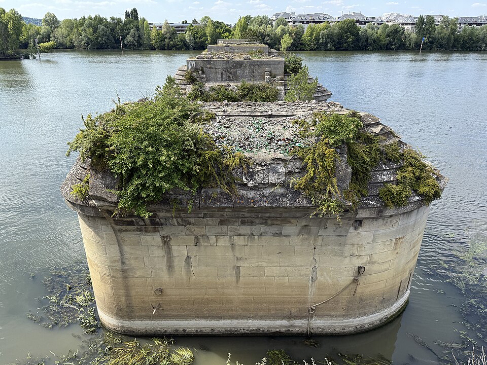 Des fouilles et des travaux anciens ont mis au jour des pièces et des objets dans les fondations, témoignant des multiples phases d'occupation et de construction. Aujourd'hui subsistent des vestiges : trois arches rénovées et quatre piles du côté de Poissy, ainsi que trois arches du côté de Carrières-sous-Poissy, ces dernières recouvertes et parfois réutilisées à des fins commerciales lors d'aménagements récents. Les rives et les îles environnantes ont été profondément transformées par l'urbanisation et des opérations d'aménagement, y compris des zones d'habitat et d'activités.