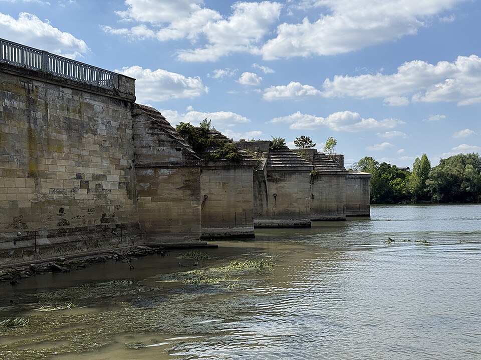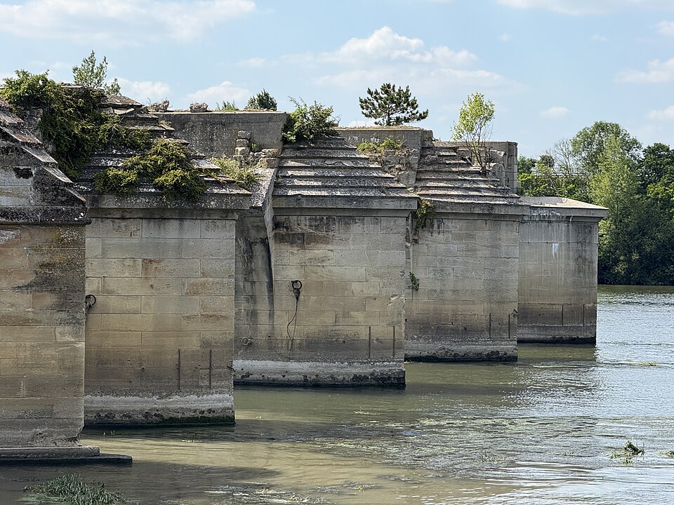 Durant la Seconde Guerre mondiale, des destructions volontaires et des bombardements ont gravement endommagé l'ouvrage : des arches furent détruites en juin 1940 pour retarder l'avance allemande, l'ouvrage fut réparé et utilisé par l'occupant, puis il subit d'importants bombardements alliés en 1944 et des combats lors de la Libération qui entraînèrent la disparition de larges portions du tablier. Après-guerre, l'État fit établir un pont provisoire en béton et bois et, temporairement, un pont Bailey permit la reprise de la circulation; un nouvel ouvrage définitif fut inauguré en 1952 et les démolitions et nettoyages des anciennes fondations s'achevèrent en 1953.